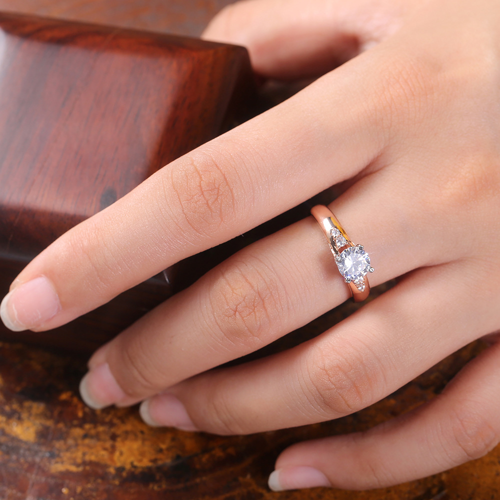 Micro-inlaid celebrity style classic all-match popular ring six-claw zircon wedding ring European and American style light luxury ring