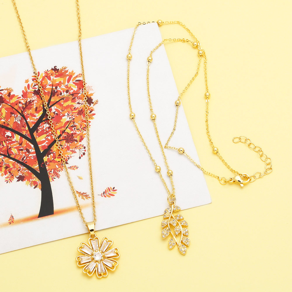 European and American jewelry simple small fresh flower necklace female temperament versatile leaf pendant clavicle chain nka094