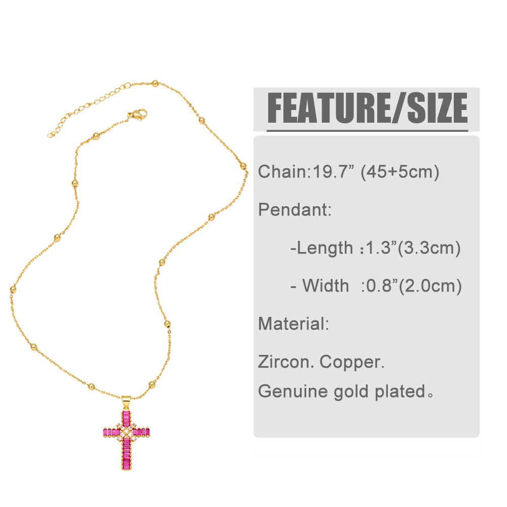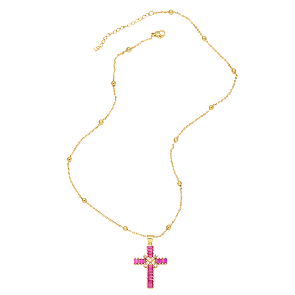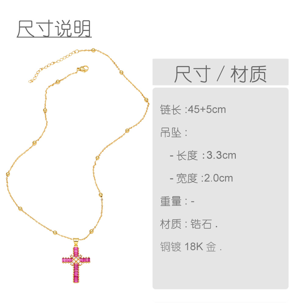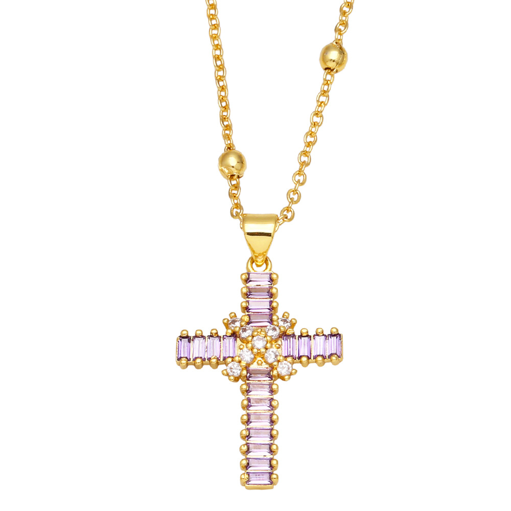 European and American jewelry style fashion micro-inlaid colored zircon geometric cross pendant necklace for women nkb412