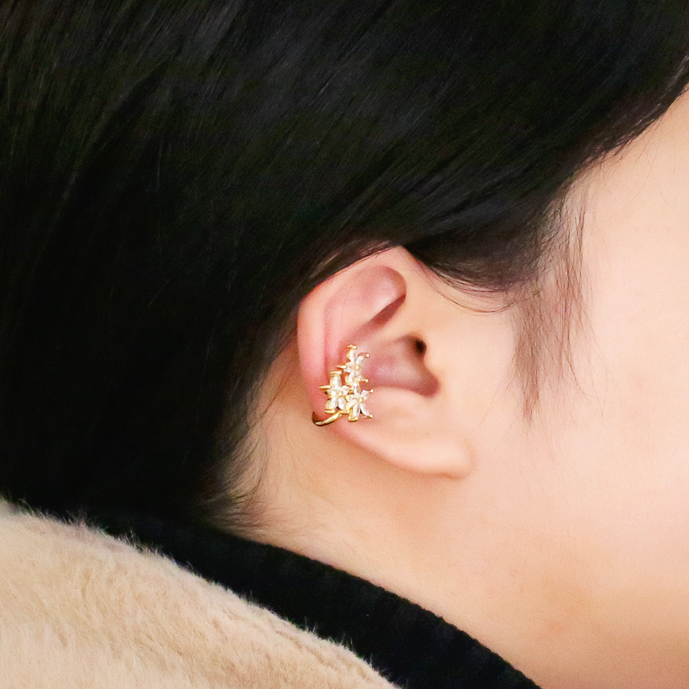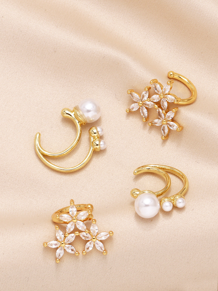 European and American jewelry style pearl earrings for women light luxury high-end inlaid zircon gold-plated flower ear clip erz11