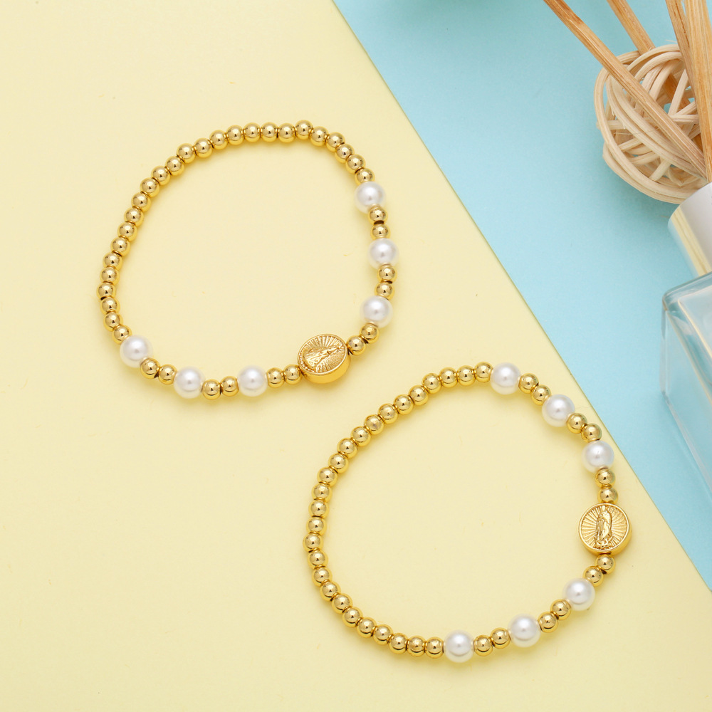 European and American jewelry Virgin Mary bracelet women simple versatile pearl copper bead bracelet hand jewelry bra57