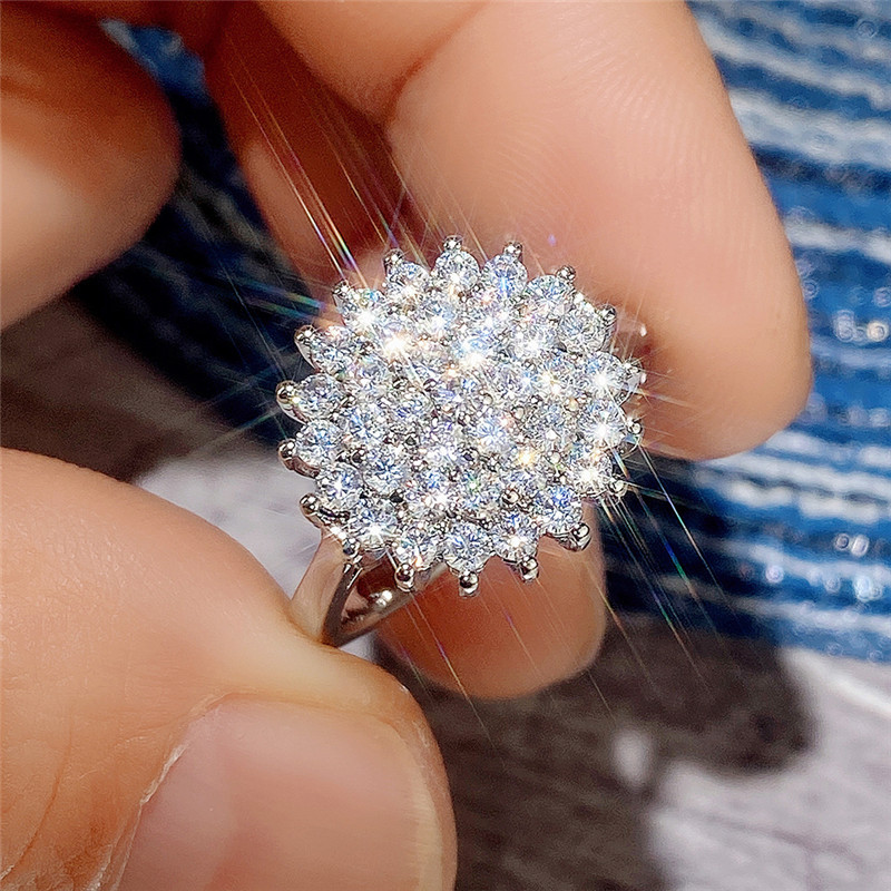 Micro-inlaid celebrity style classic all-match popular ring six-claw zircon wedding ring European and American style light luxury ring