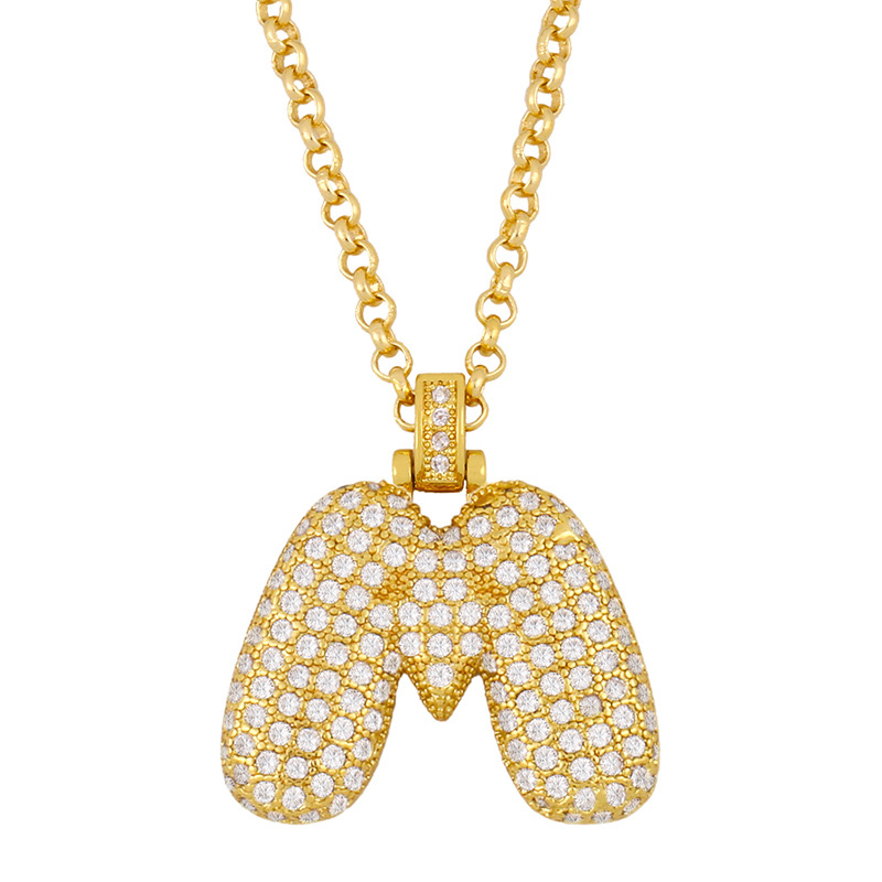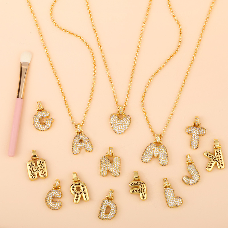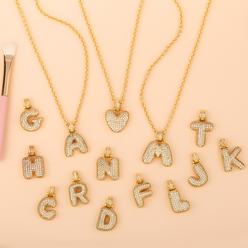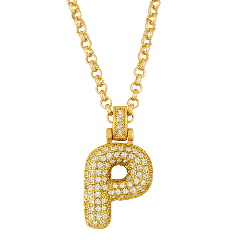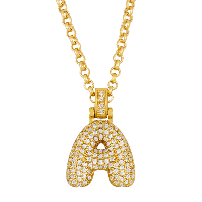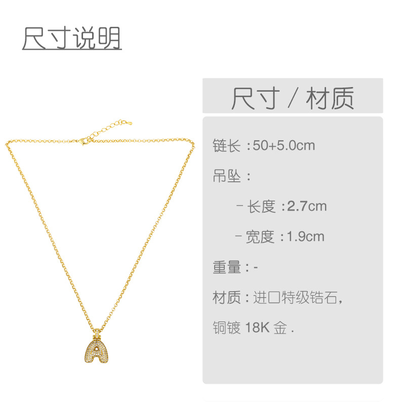 Letter necklace European and American new color zircon necklace with diamond surname English AZ letter necklace nkp25