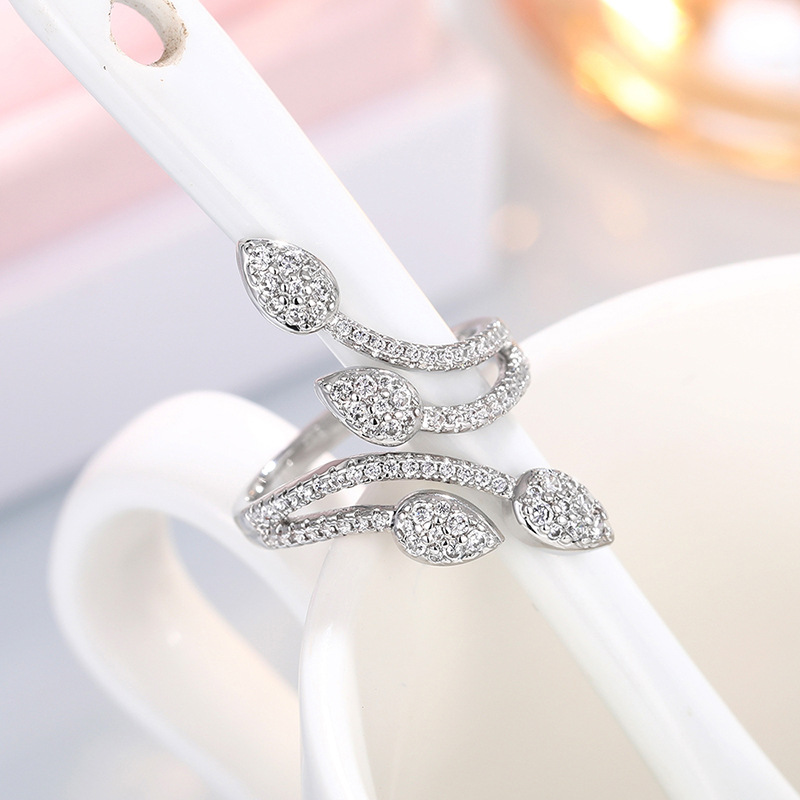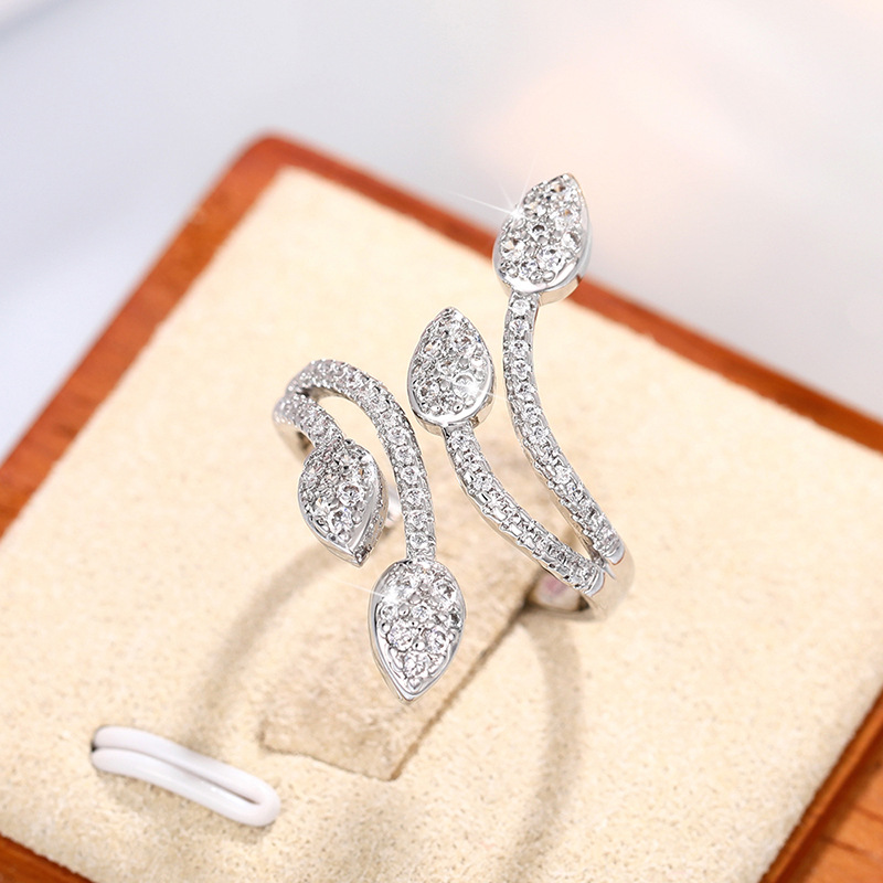 New best-selling super flash ring tree branch bud four-claw inlaid ring light luxury wedding ring for girlfriend