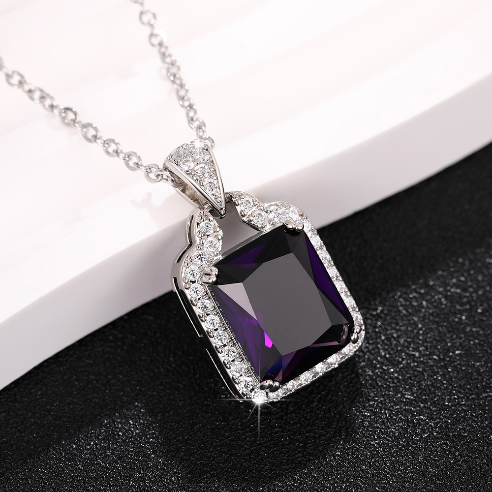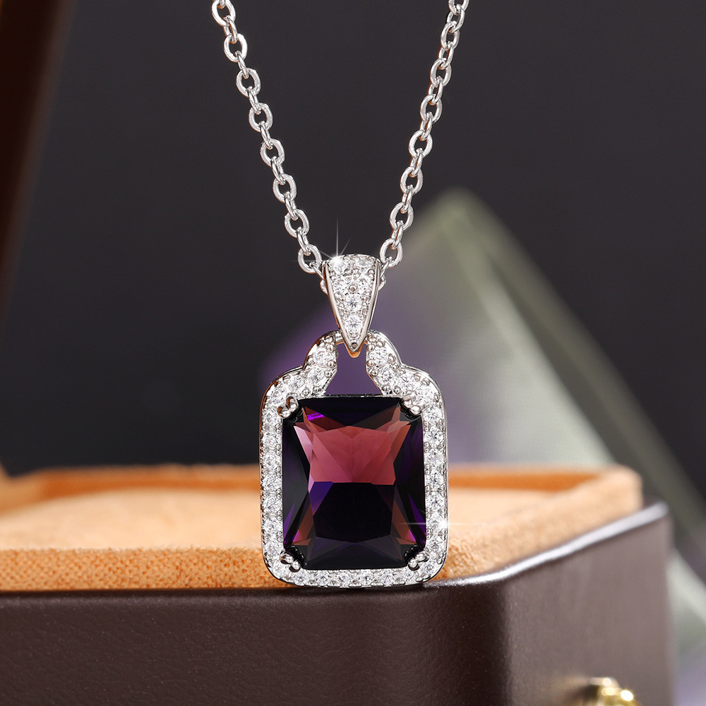 European and American light luxury fashion colored gemstone necklace fat rectangular zircon large pendant personality full diamond women's clavicle chain