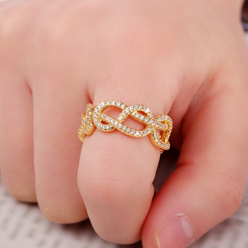 European and American light luxury full diamond chain wrapped ring female new fashion ring heavy industrial atmospheric ladies ring