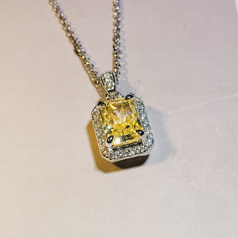 European and American light luxury heavy square necklace high-end exquisite popular pendant live hot selling princess necklace