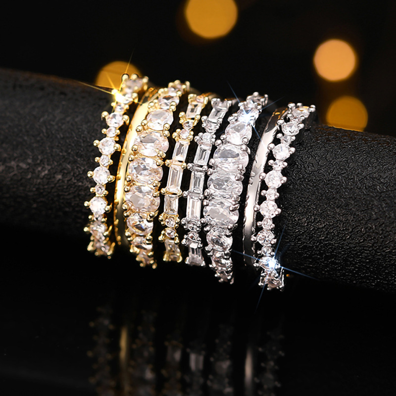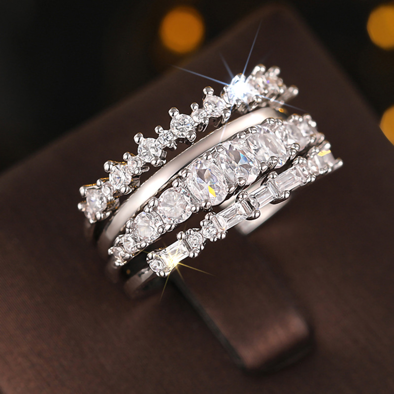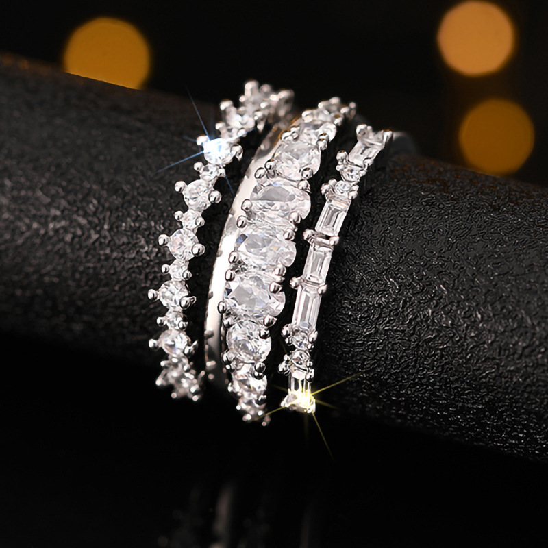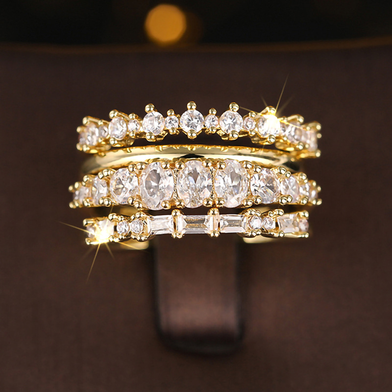 European and American light luxury high-end geometric ring women's shiny fashion ring four-piece set engagement wedding jewelry