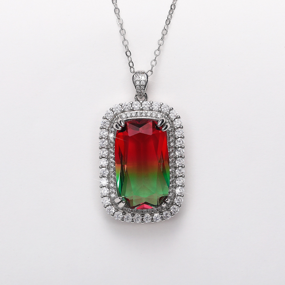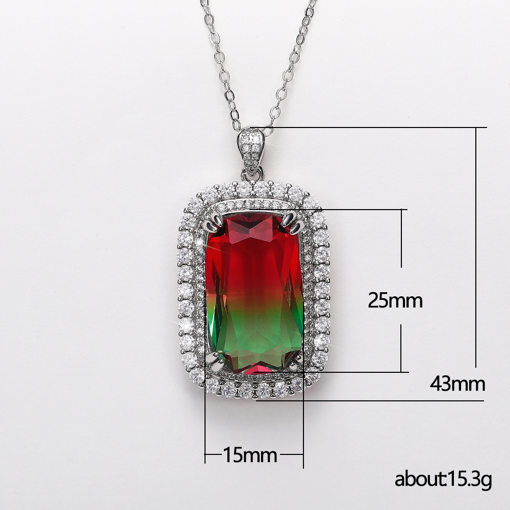European and American light luxury necklace 15*25mm super large colored zircon necklace luxury two-color gemstone pendant