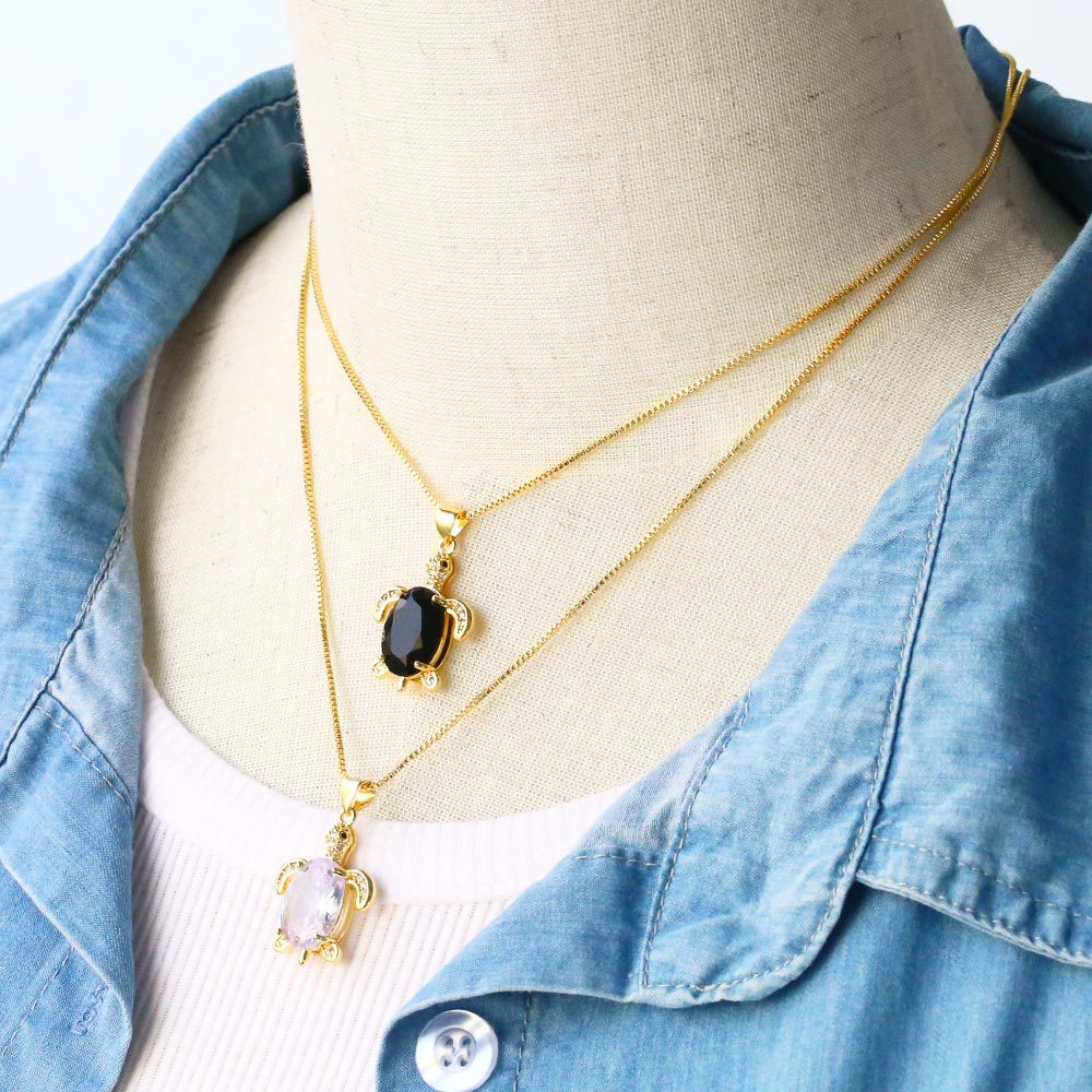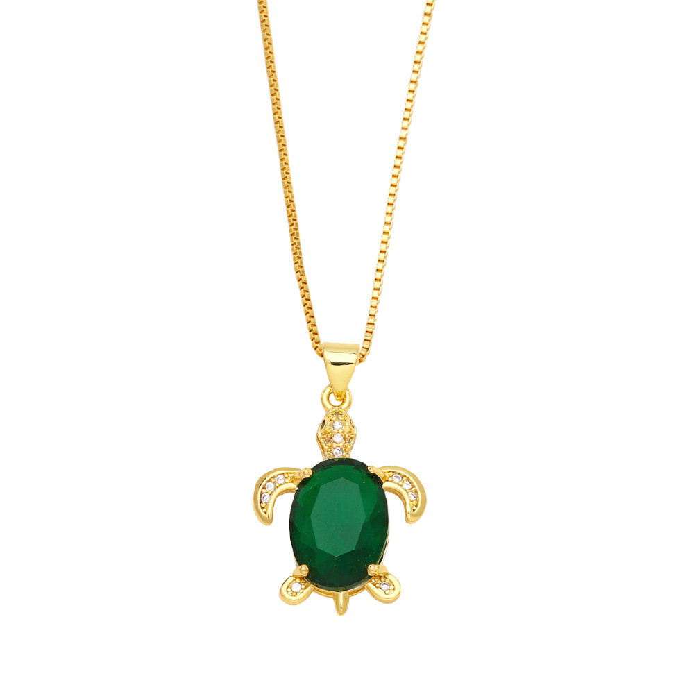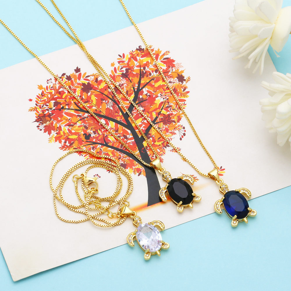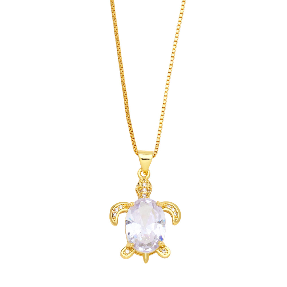 European and American light luxury niche design colorful zircon turtle pendant female personality simple turtle necklace nkb521