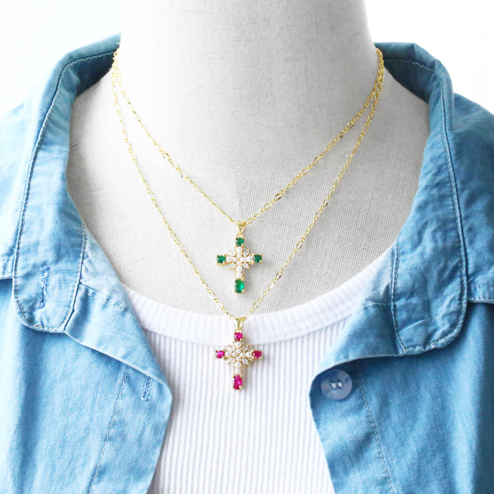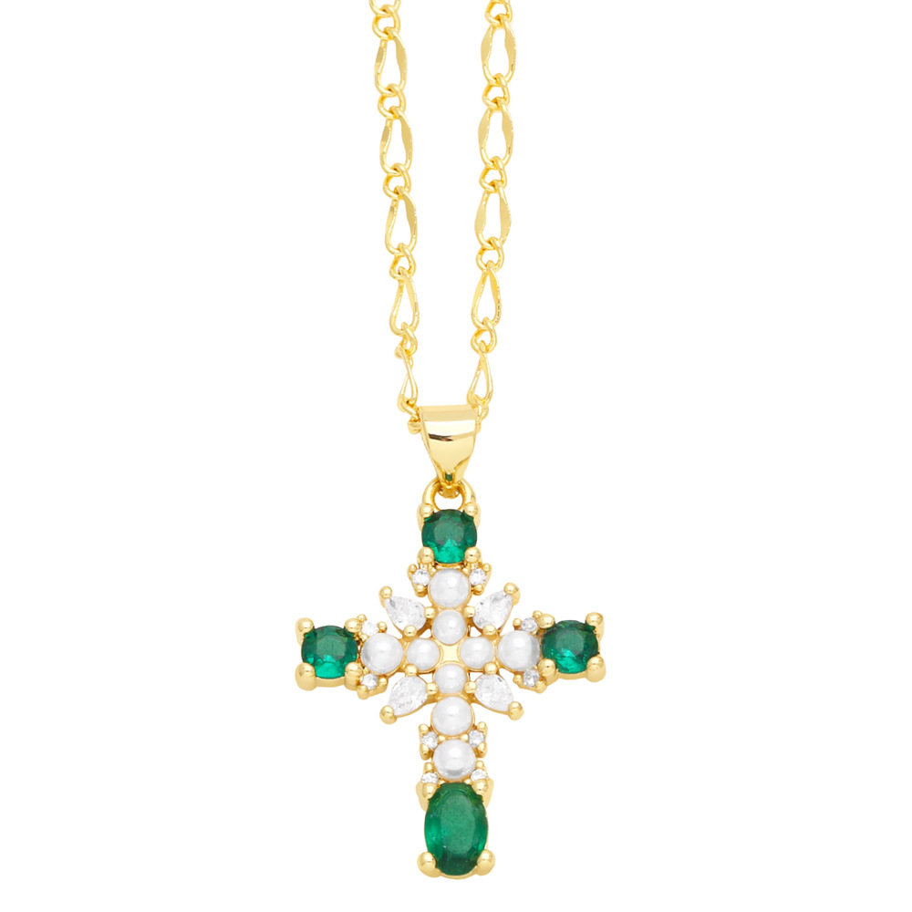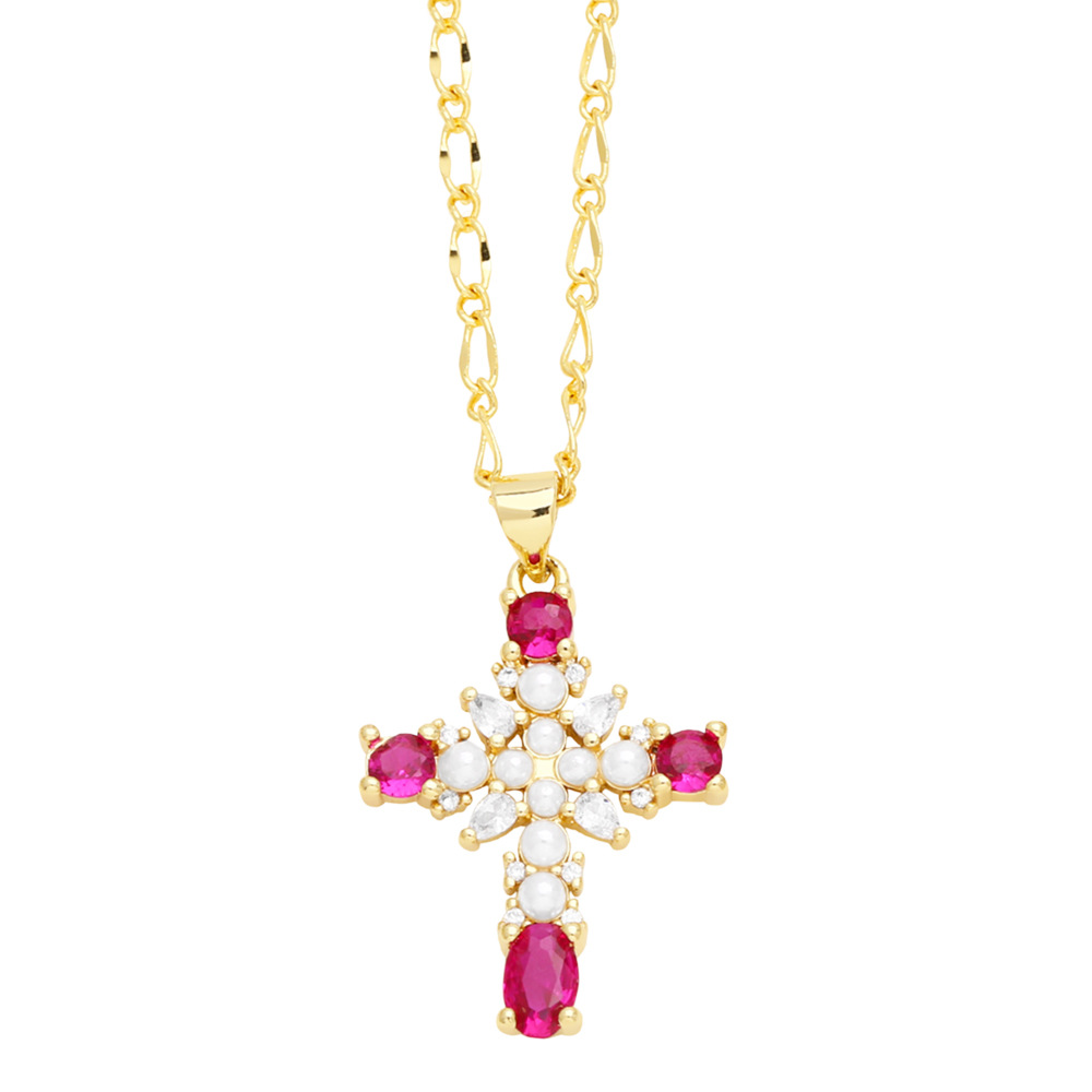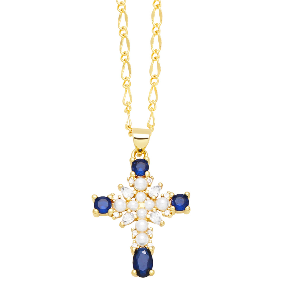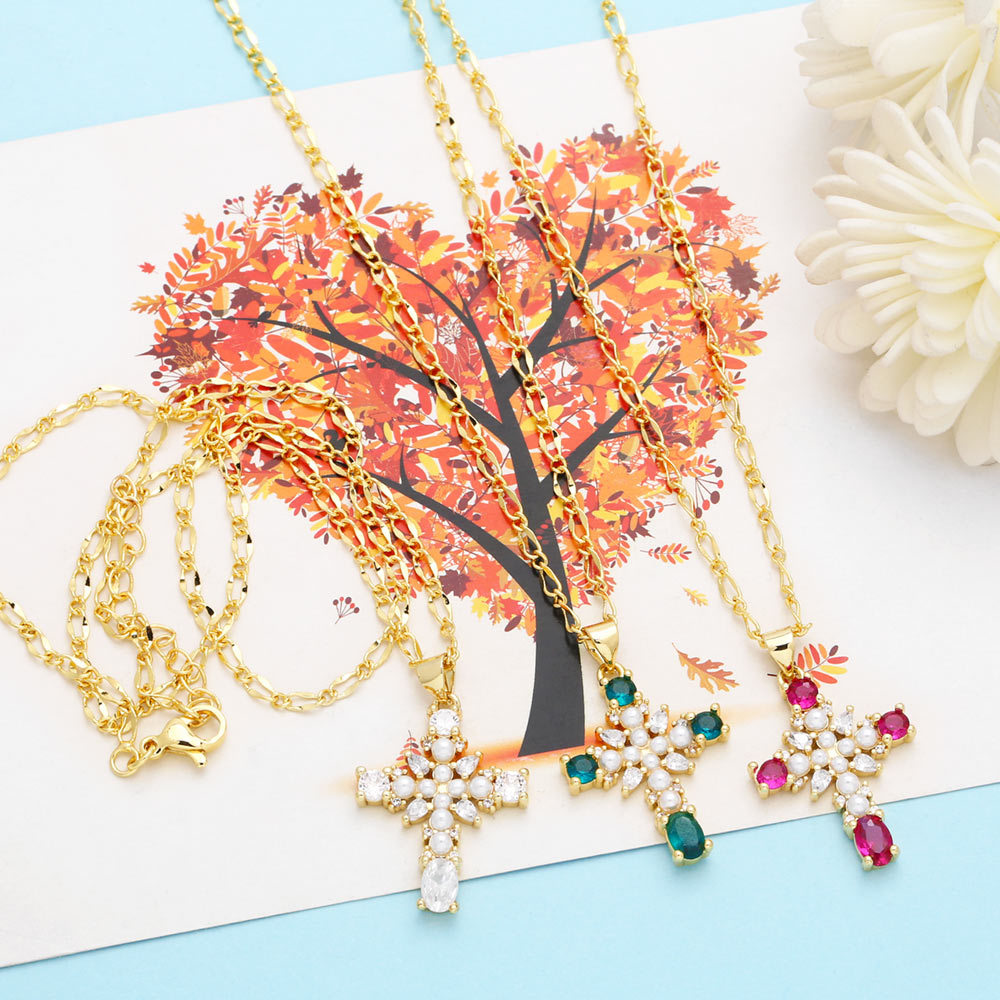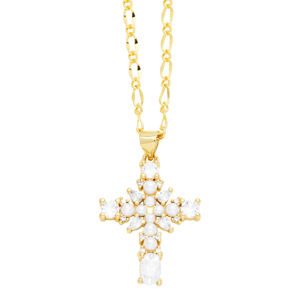 European and American light luxury pearl cross necklace niche design clavicle chain temperament versatile jewelry nku38