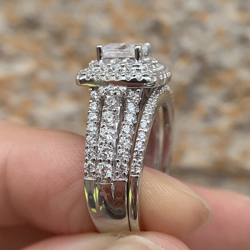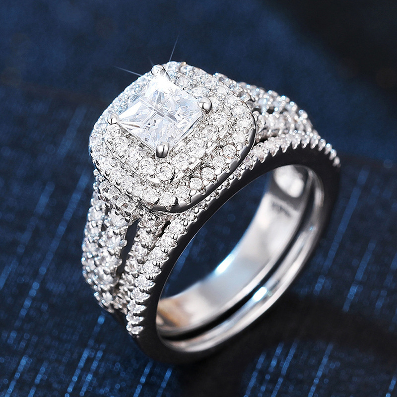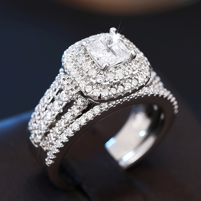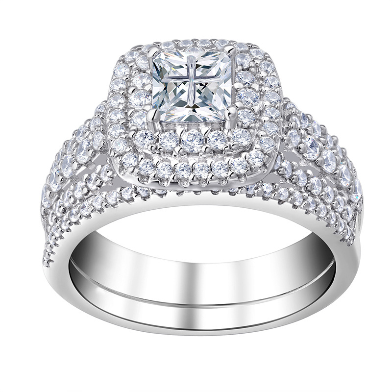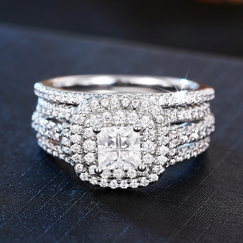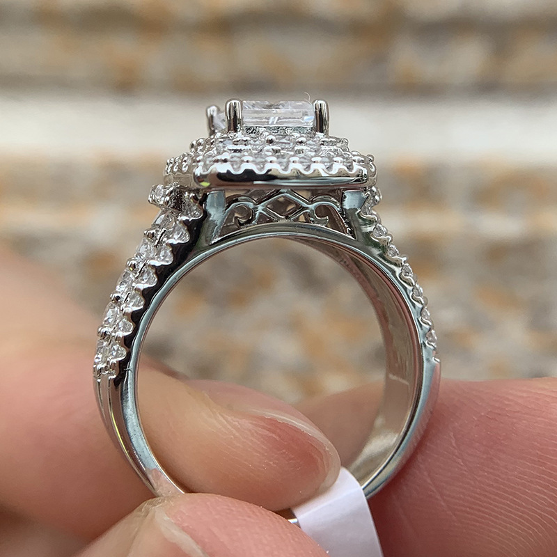 Hot selling new princess square ring European and American hot style inlaid zircon women's jewelry engagement proposal ring