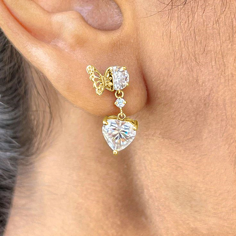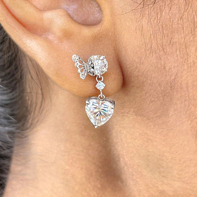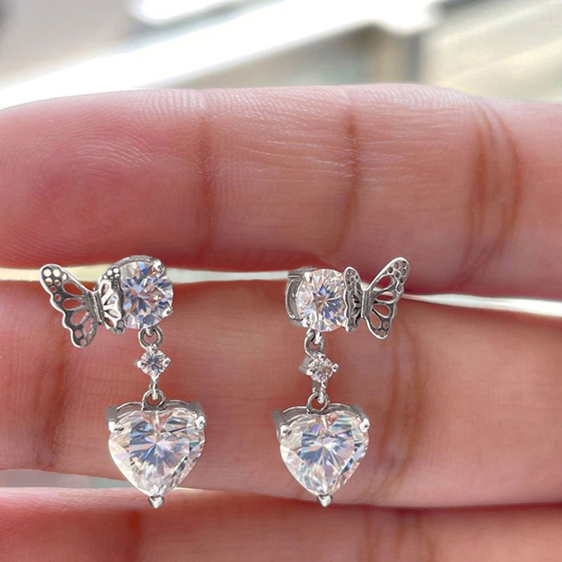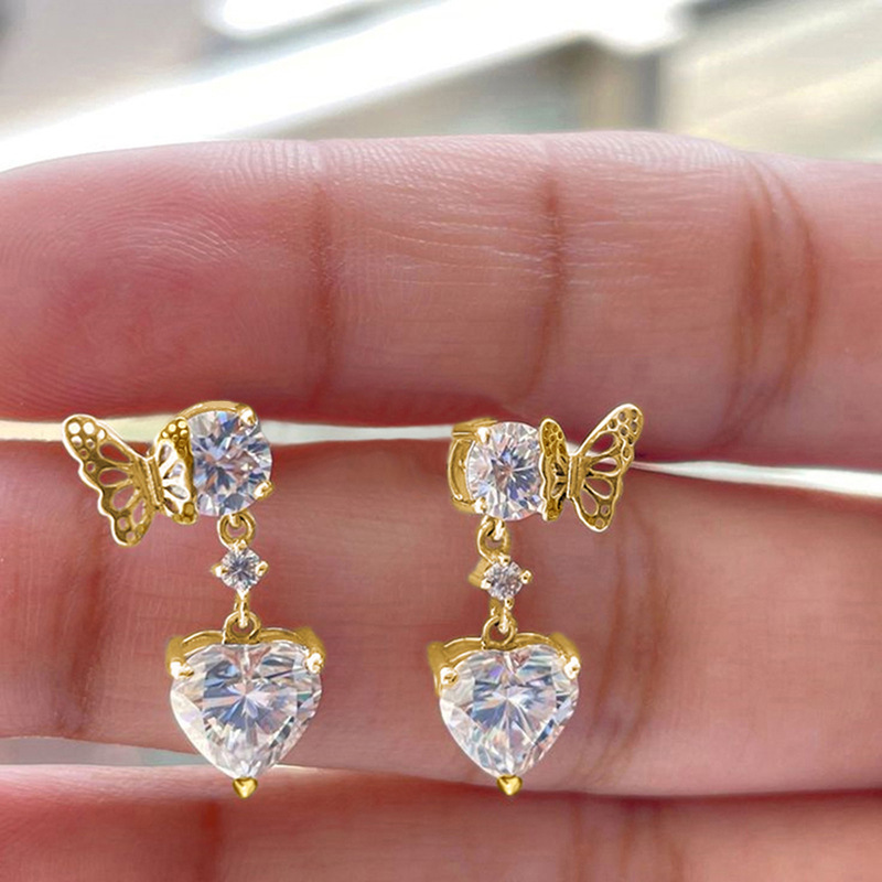 European and American love heart-shaped butterfly earrings for women sweet princess fairy earrings fashionable hot-selling earrings