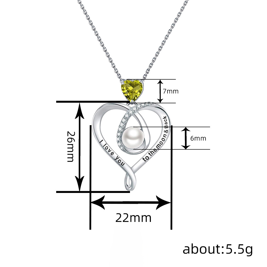 European and American love lettering design necklace for women imitation pearl micro-inlaid zircon jewelry elegant temperament heart shape