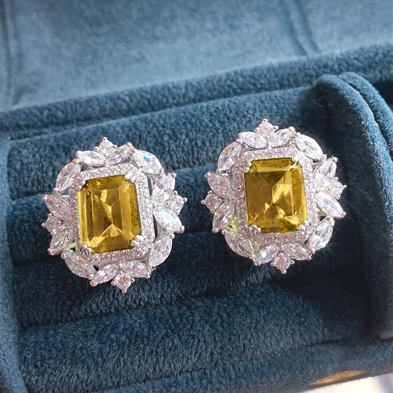 European and American luxury best-selling earrings, palace hot-selling square flower earrings, source manufacturer