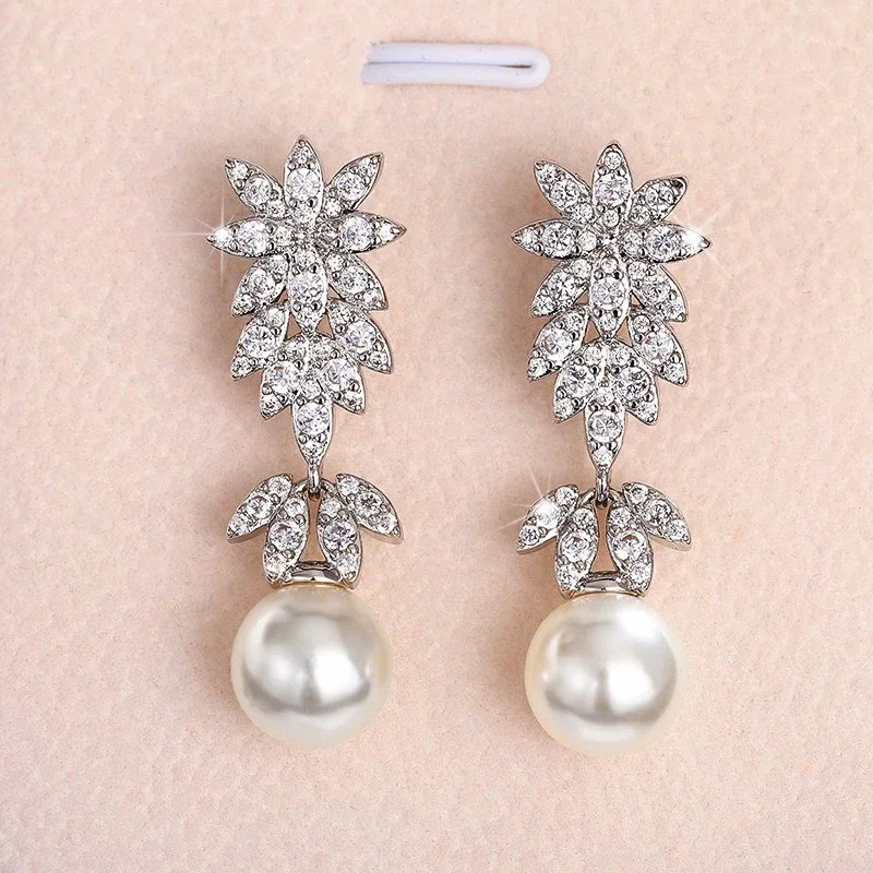 European and American luxury bridal wedding dress earrings temperament super flash imitation pearl accessories banquet flower earrings