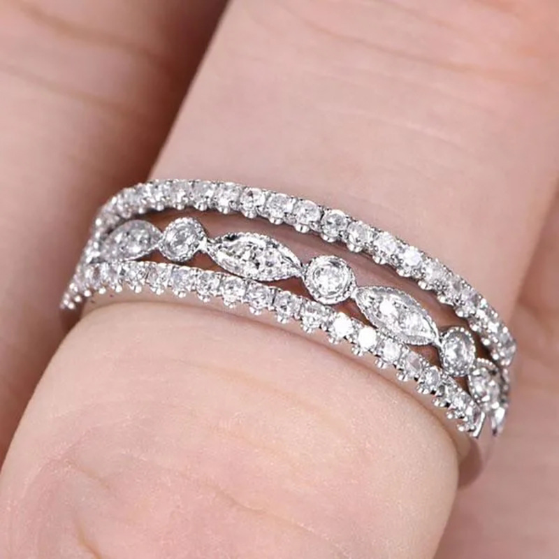 European and American luxury design ring fashionable temperament horse eye zircon ring multi-layer hollow design index finger ring