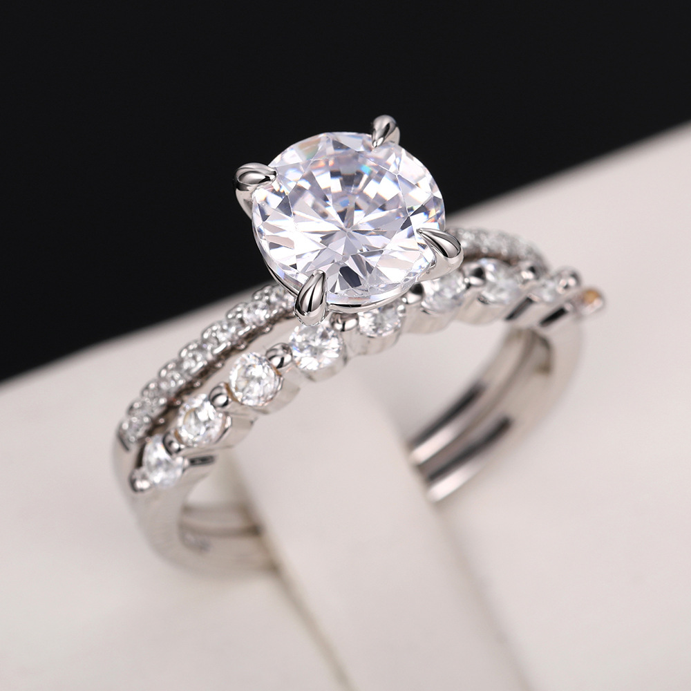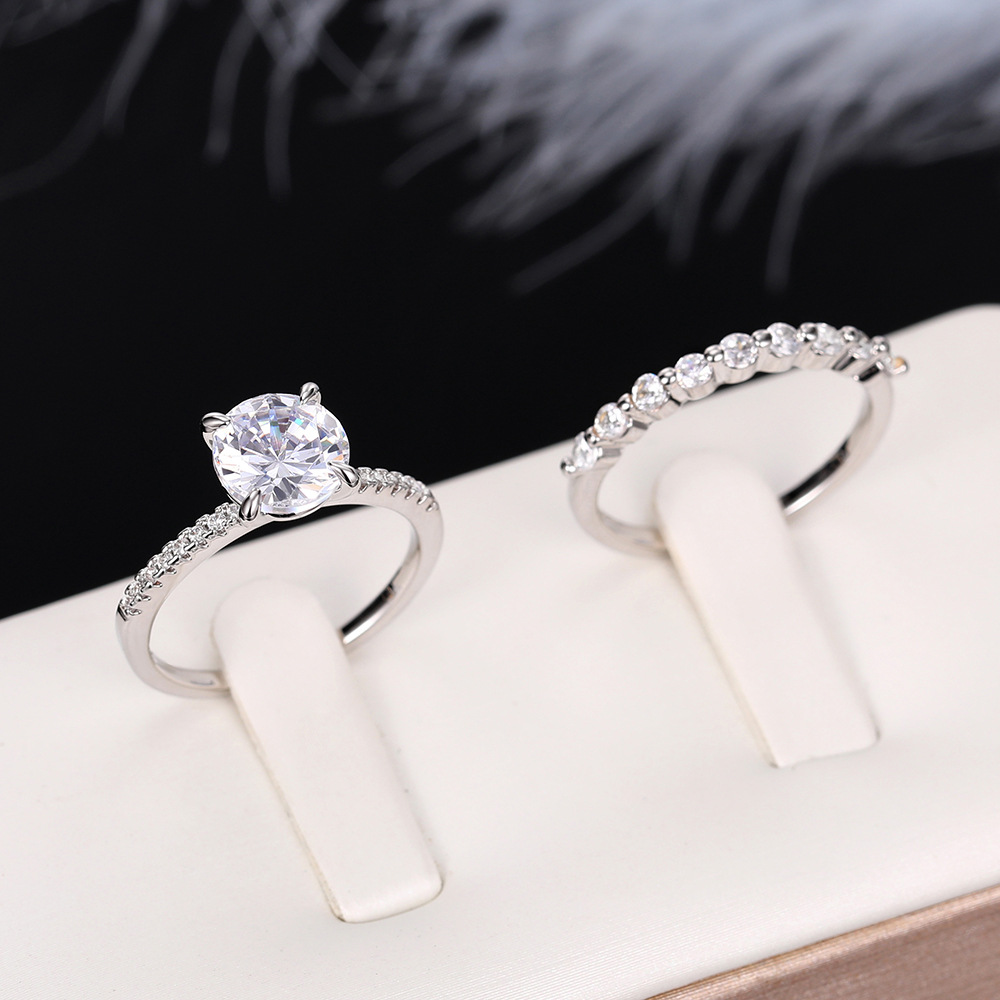 Micro-inlaid celebrity style classic all-match popular ring six-claw zircon wedding ring European and American style light luxury ring