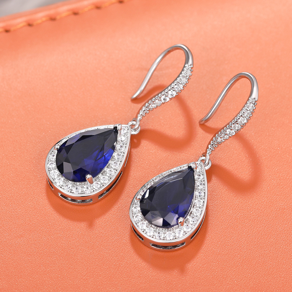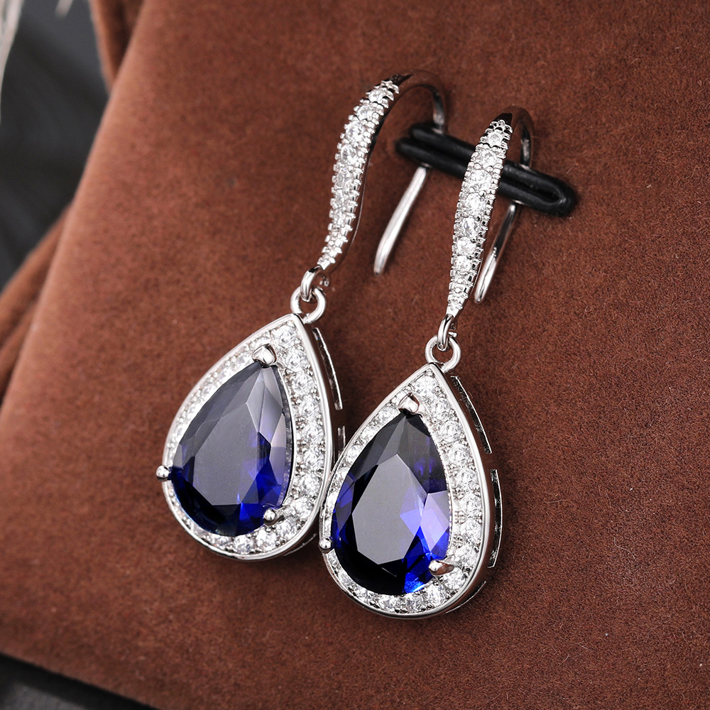 European and American luxury retro hot selling earrings sapphire tanzanite zircon earrings
