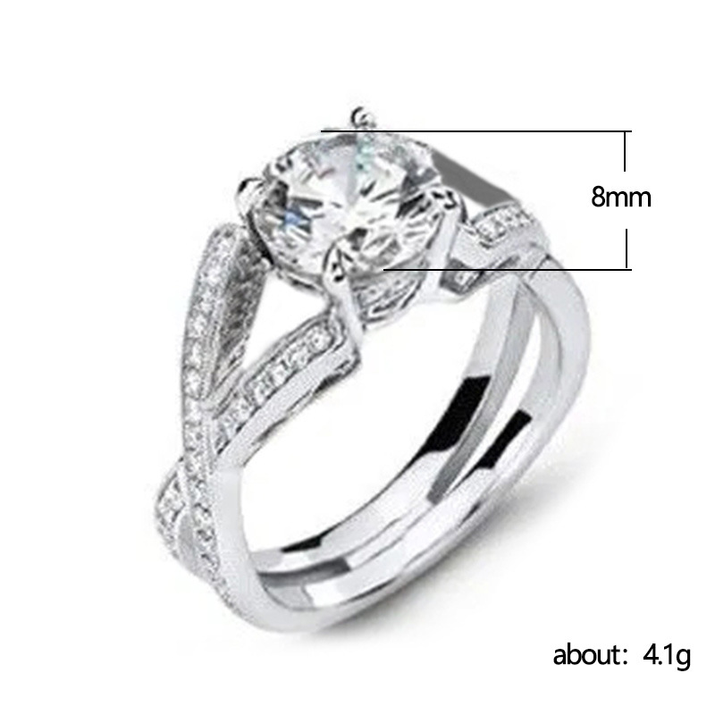 Classic four-claw imitation zircon micro-inlaid ring women's double row two-color twist arm ring engagement wedding ring women