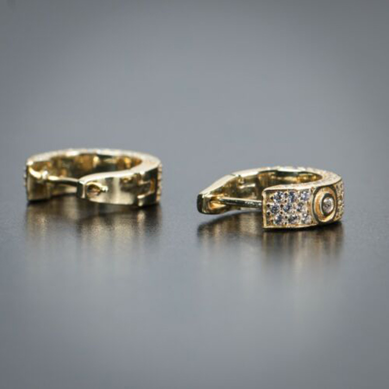 European and American men's earrings wholesale new style full of zircon earrings fashionable hip-hop men's trendy earrings