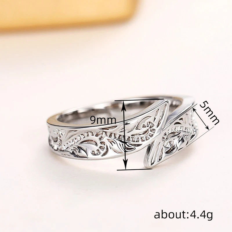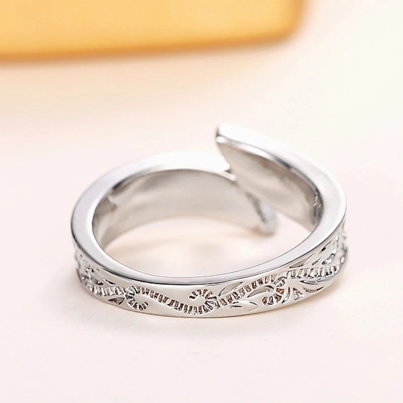 Classic retro engraved auspicious flower ring classical wide version Miao ring Yunnan ethnic style men and women's jewelry