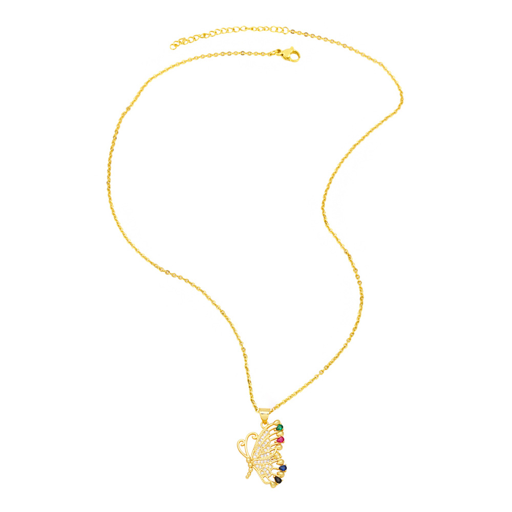 European and American necklace niche personality hip-hop fashion color zircon butterfly pendant necklace female nkb466