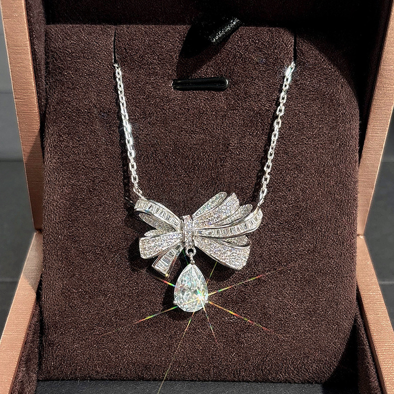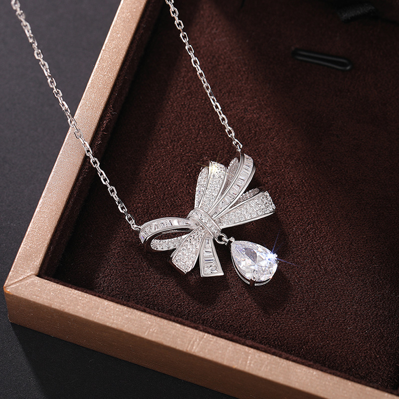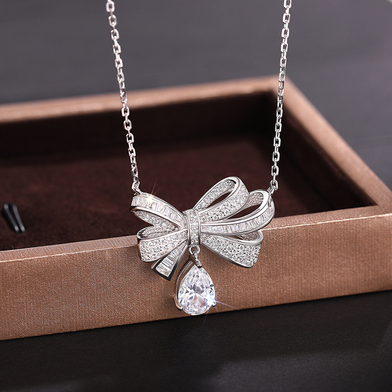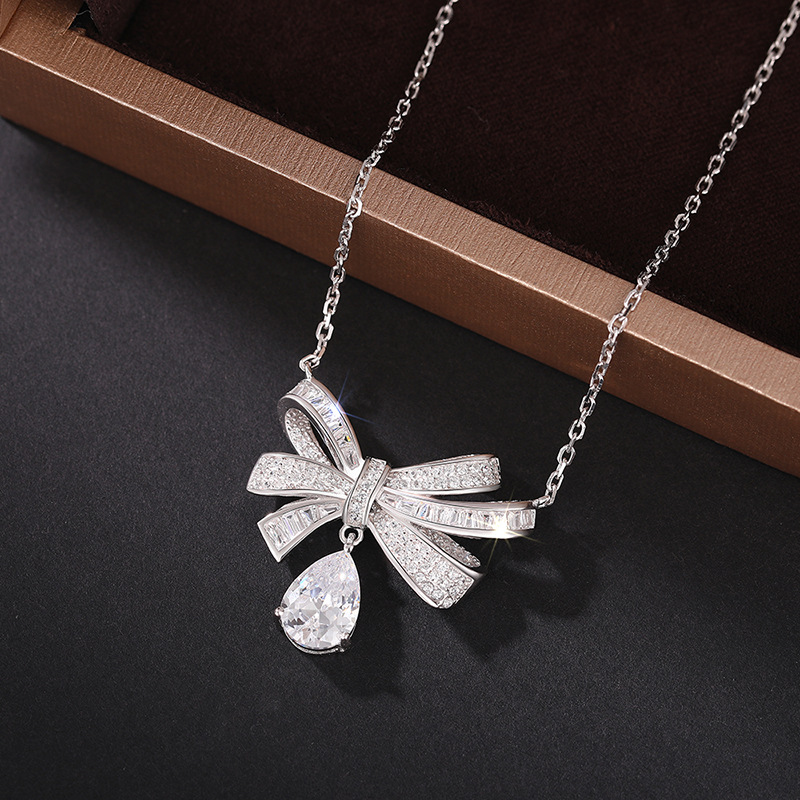 European and American new bow necklace women's light luxury style water drop pendant jewelry sweet dress matching jewelry