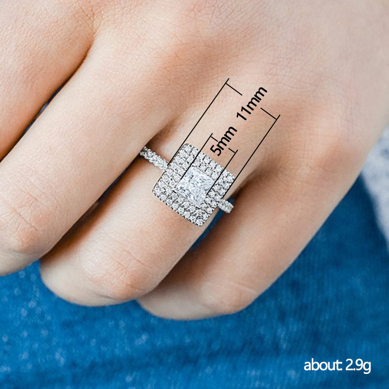 European and American new classic geometric square diamond ring women's elegant engagement proposal diamond ring hot sale