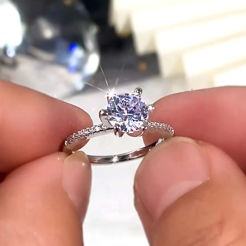 European and American new classic six-claw carat women's diamond ring simple engagement proposal zircon ring female