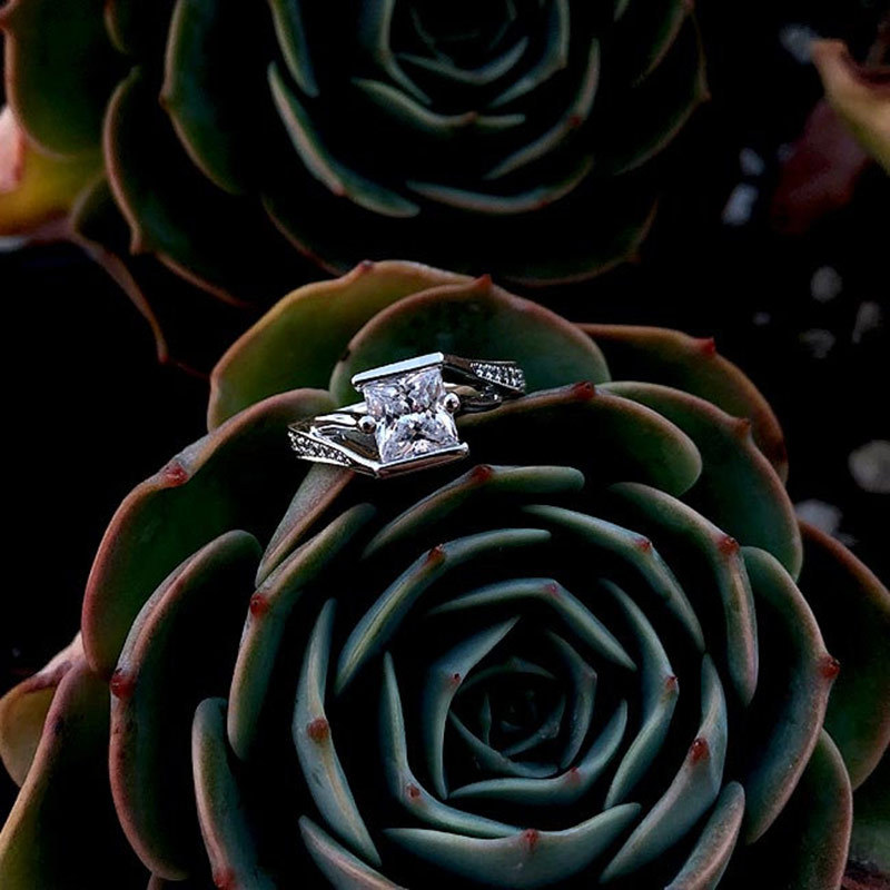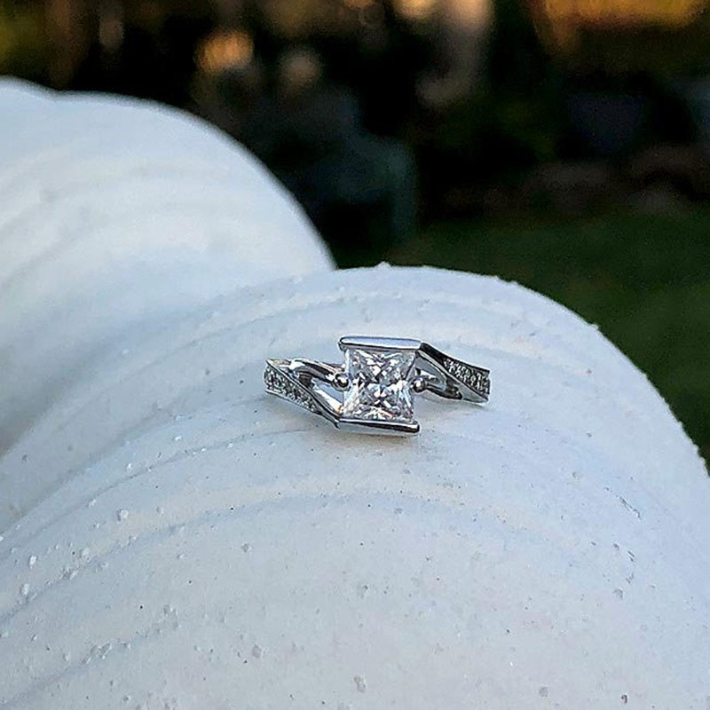 Hot selling new princess square ring European and American hot style inlaid zircon women's jewelry engagement proposal ring