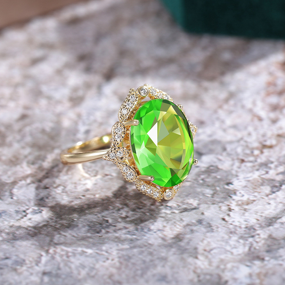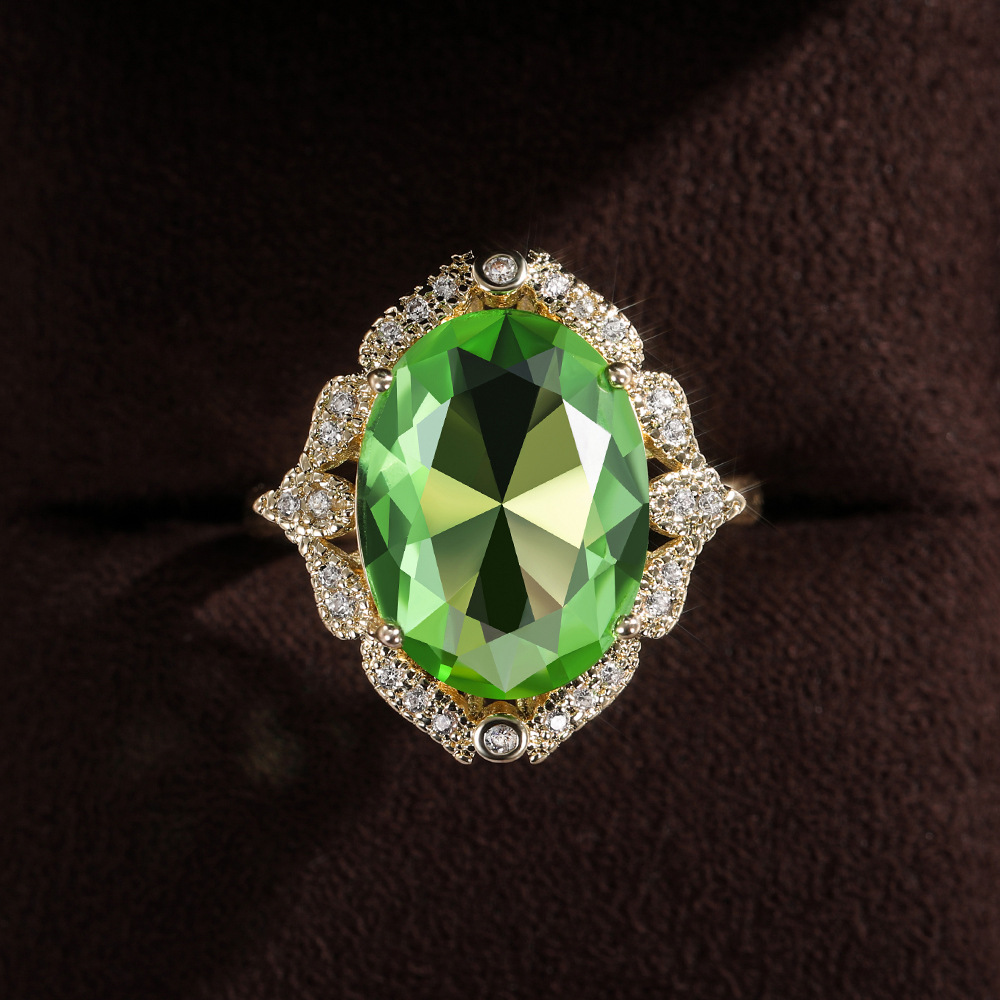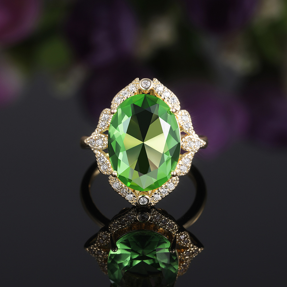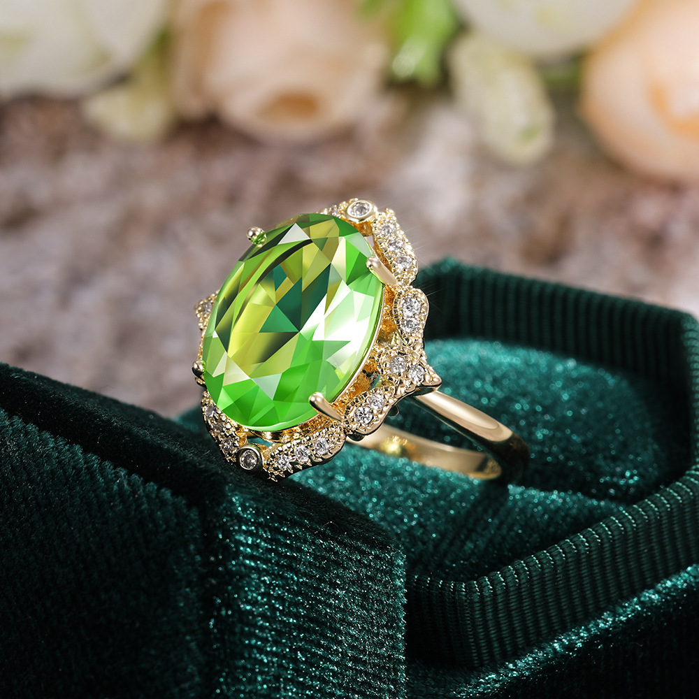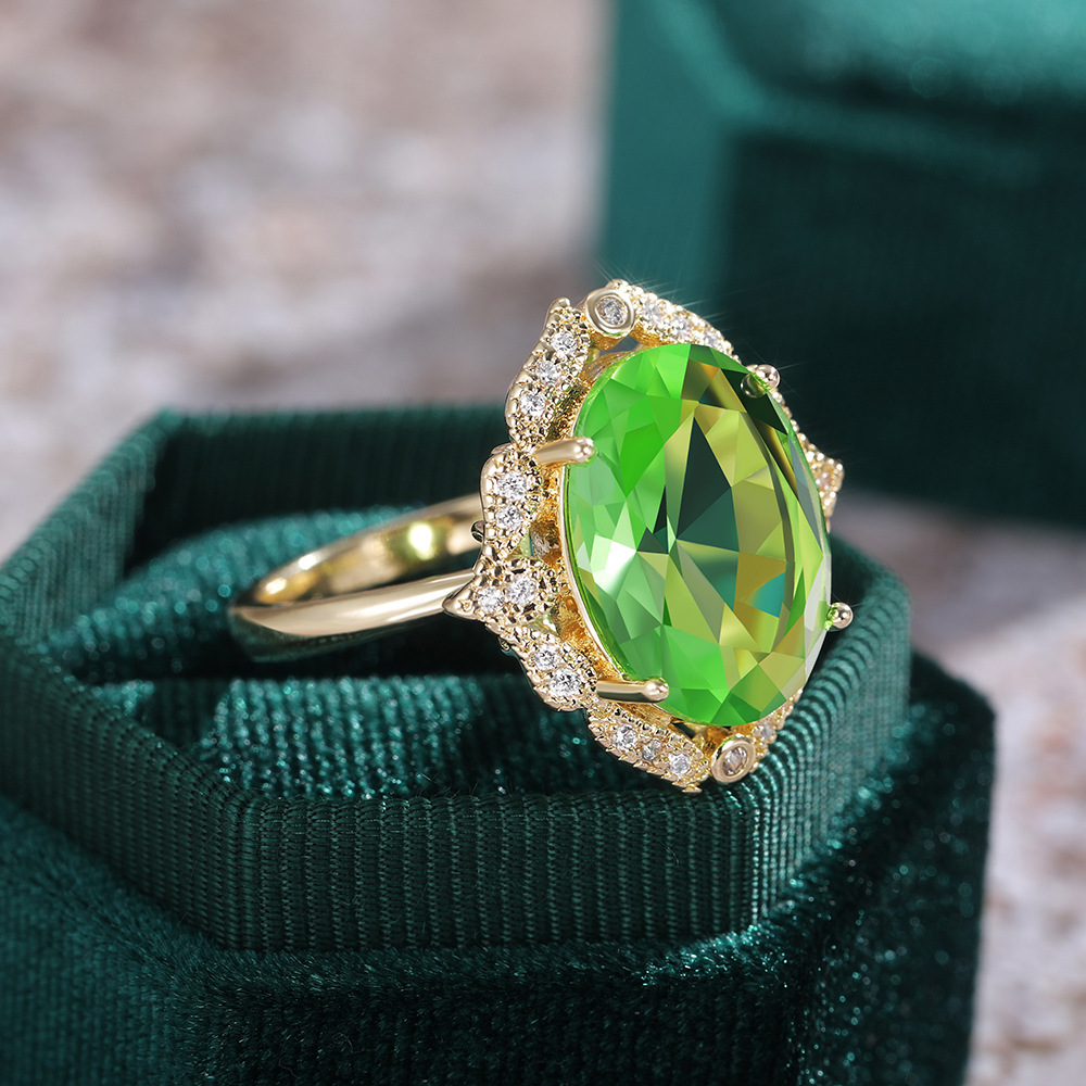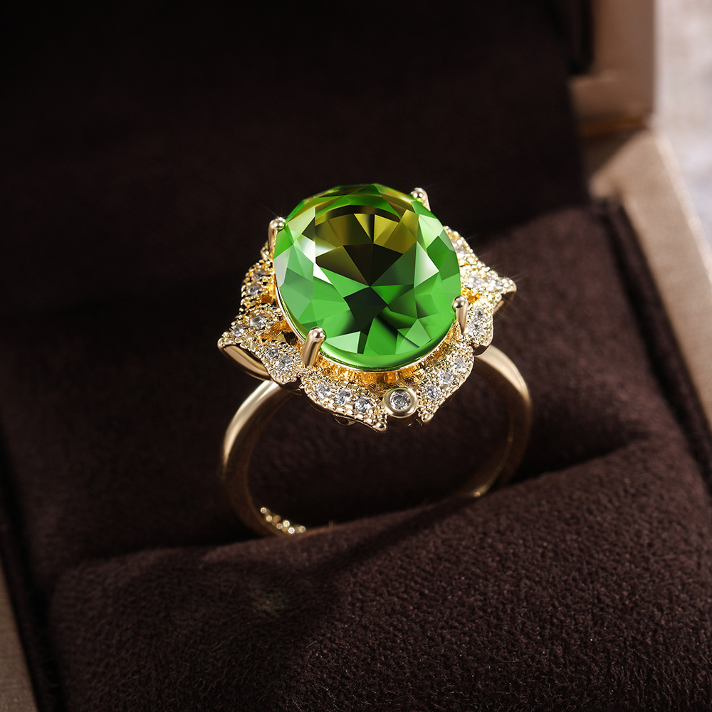 European and American new creative green large zircon ladies wedding ring atmospheric wedding ring female