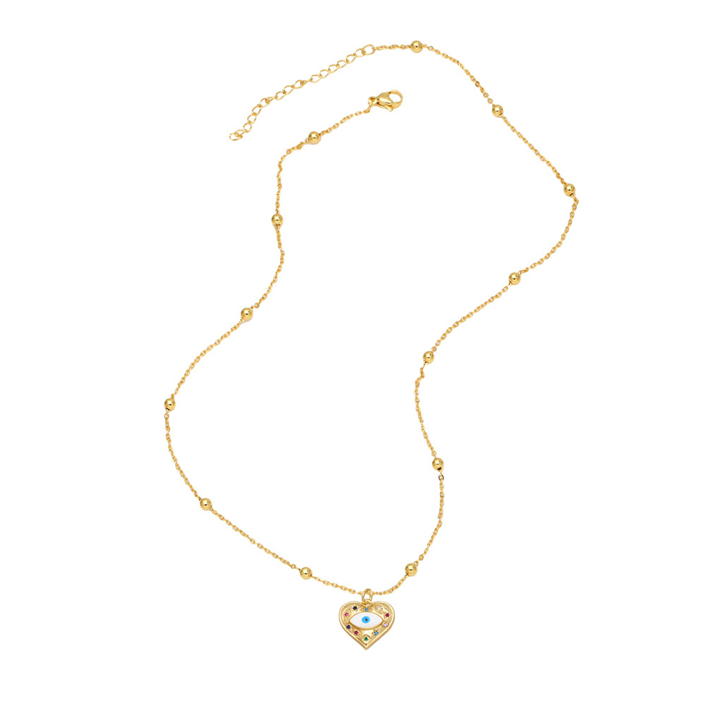 European and American new devil's eye necklace personality inlaid with colored diamonds geometric heart pendant clavicle chain female nkb257