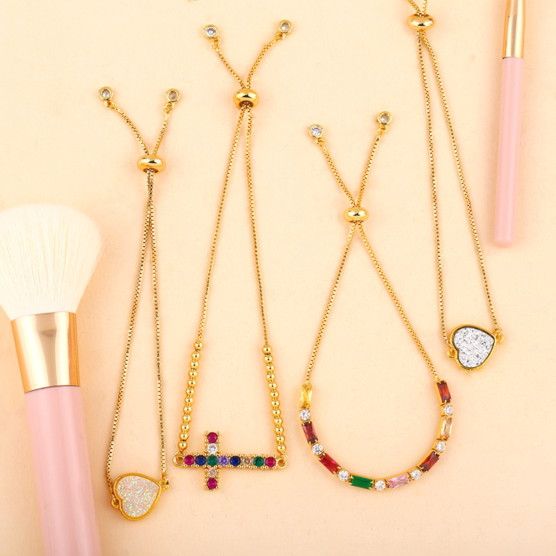 European and American new diamond bracelet shining colorful zircon hand jewelry peach heart cross crown bracelet wholesale brb78
