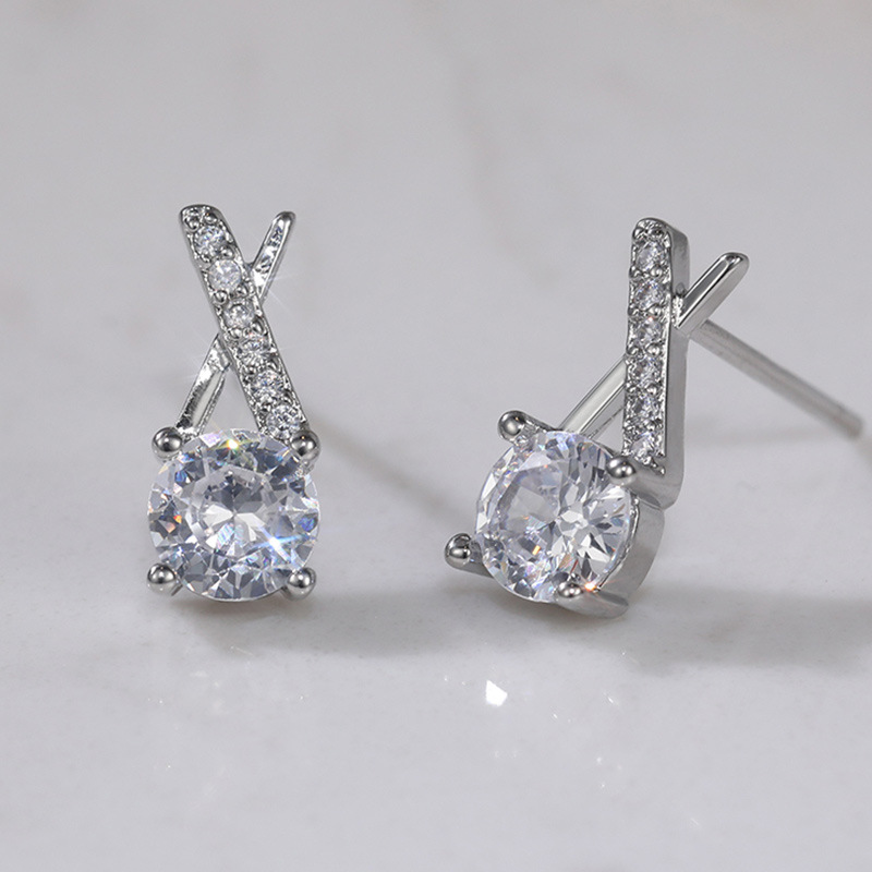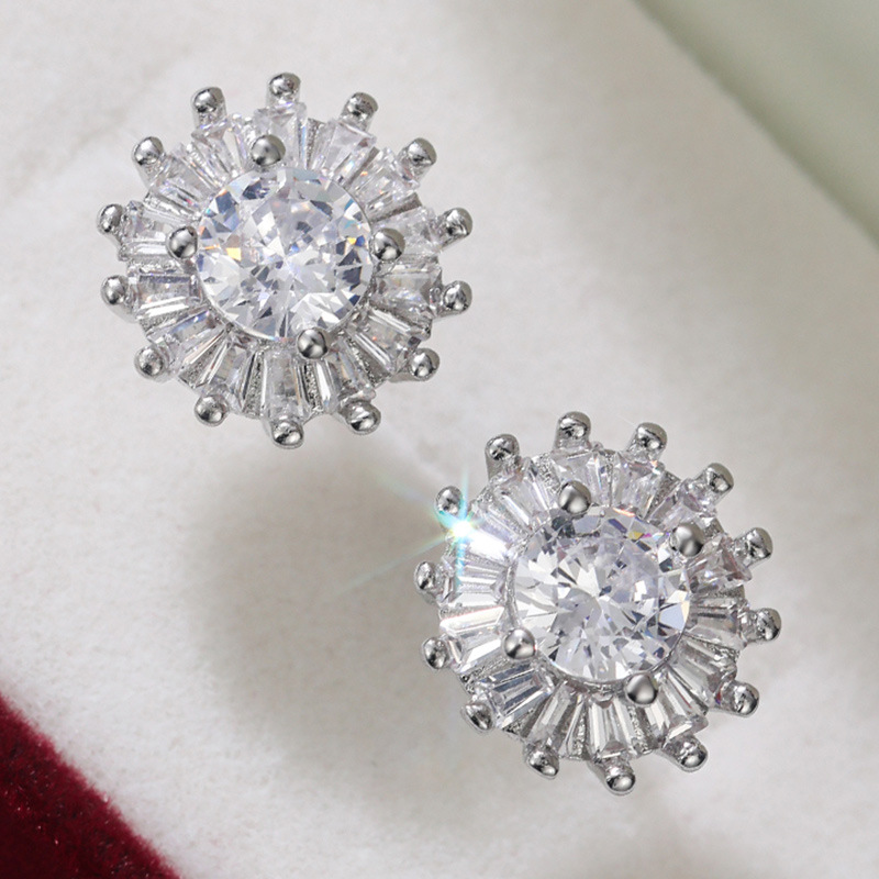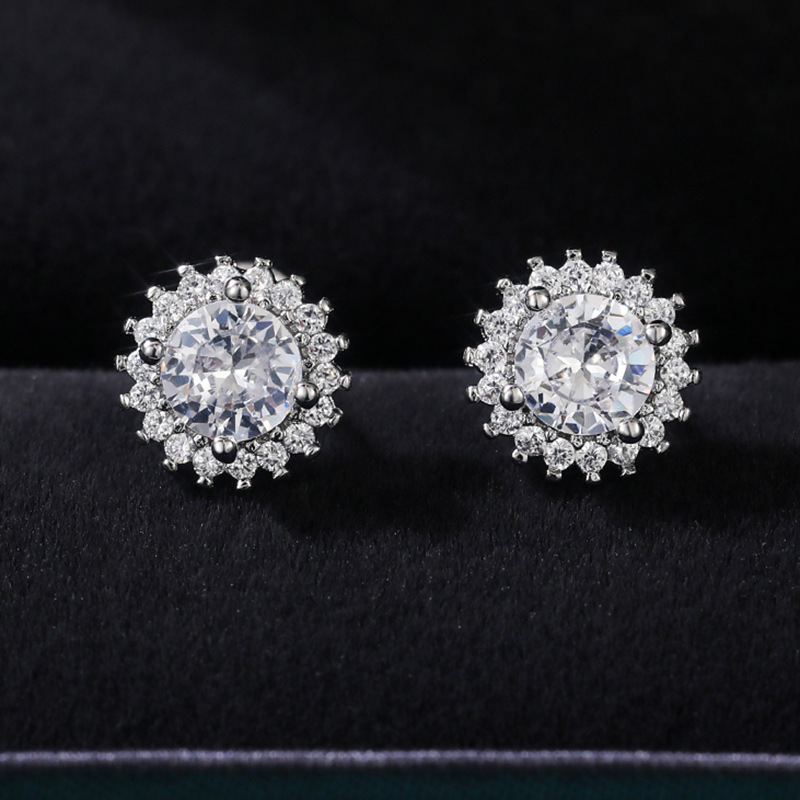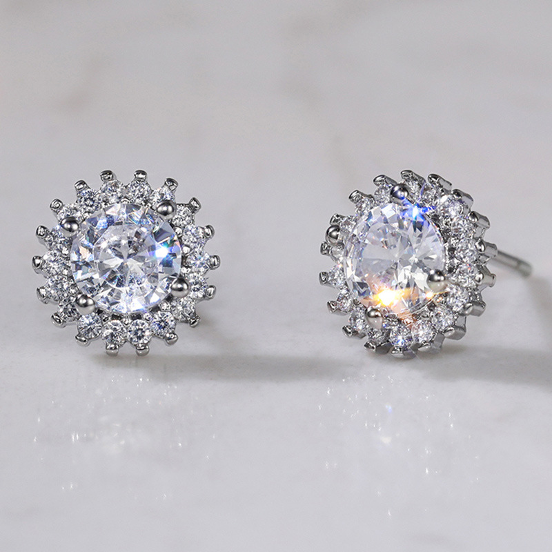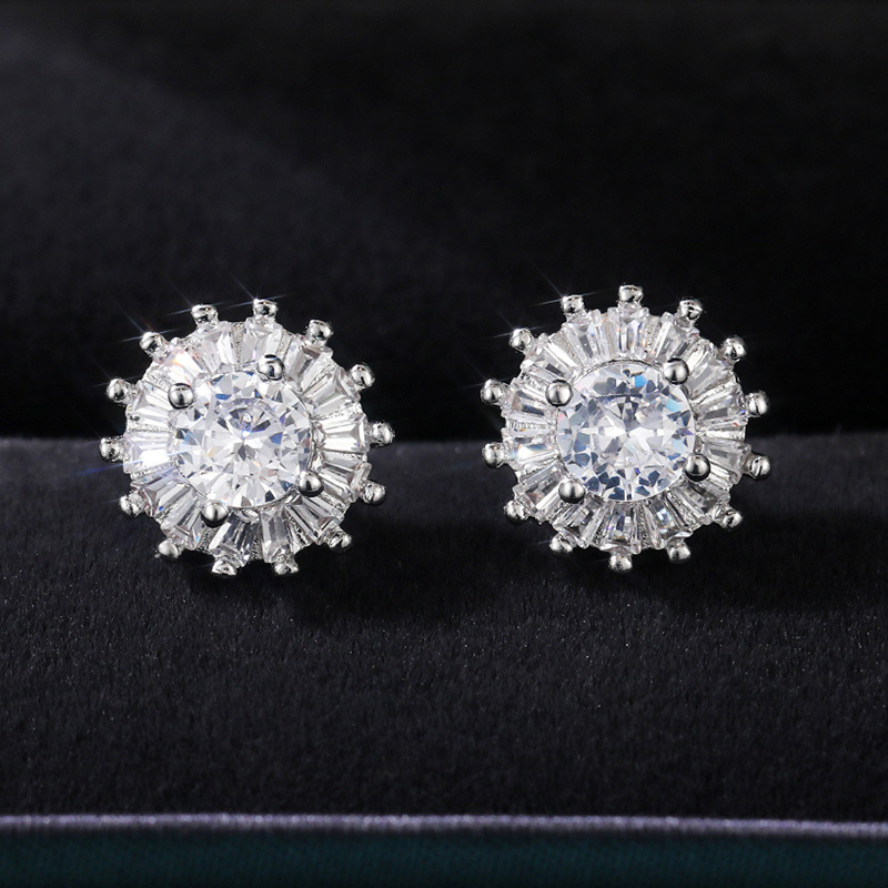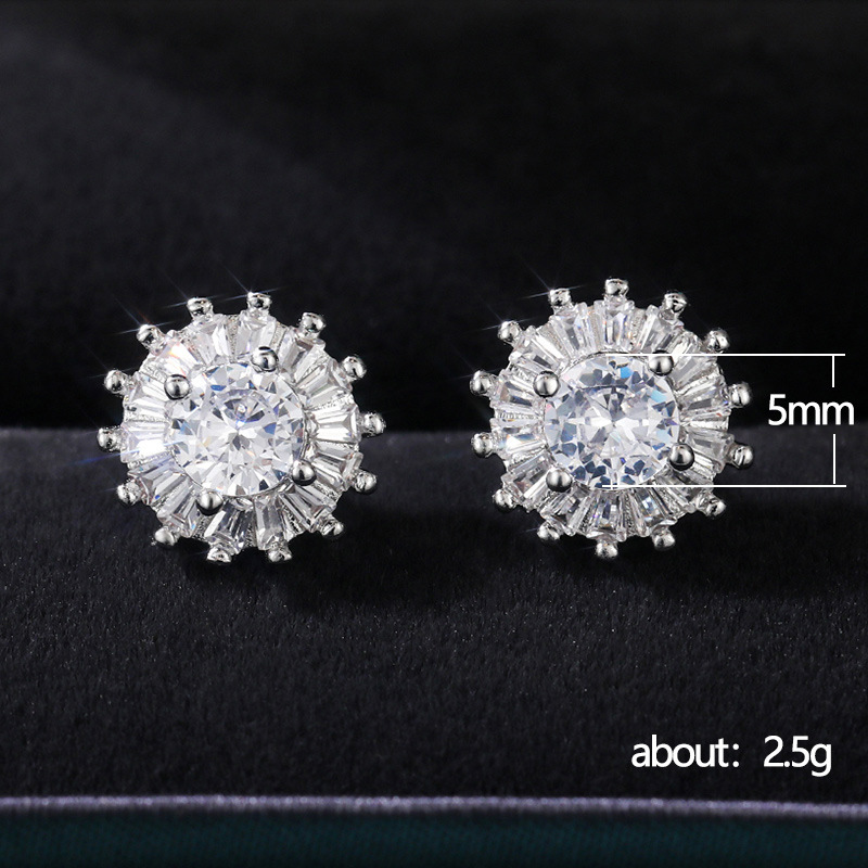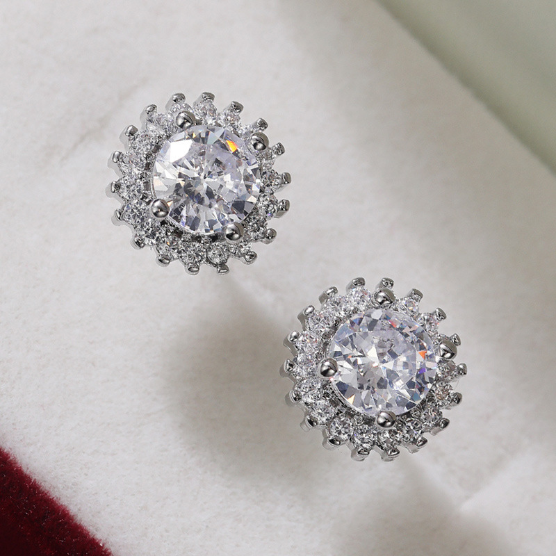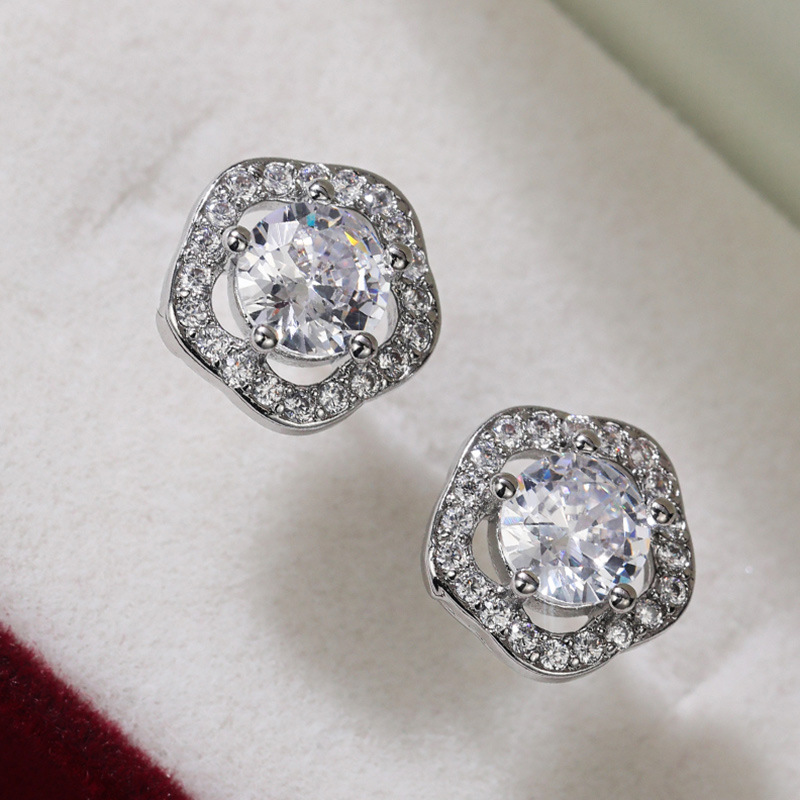 European and American new earrings fashion sweet flower zircon earrings women's simple copper plated white gold earring combination