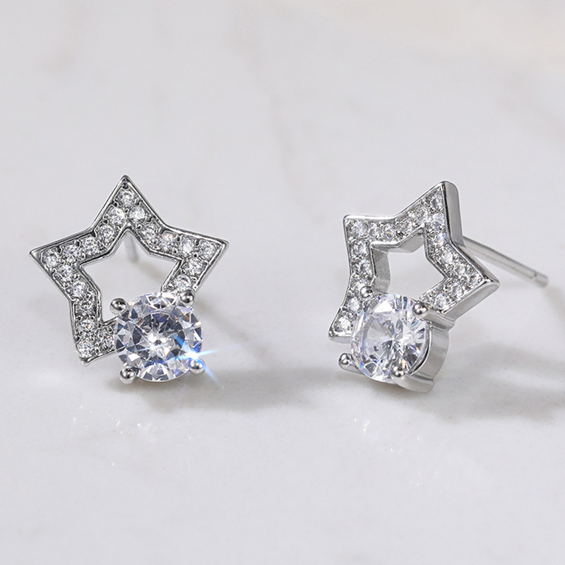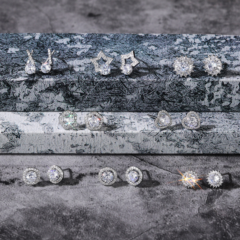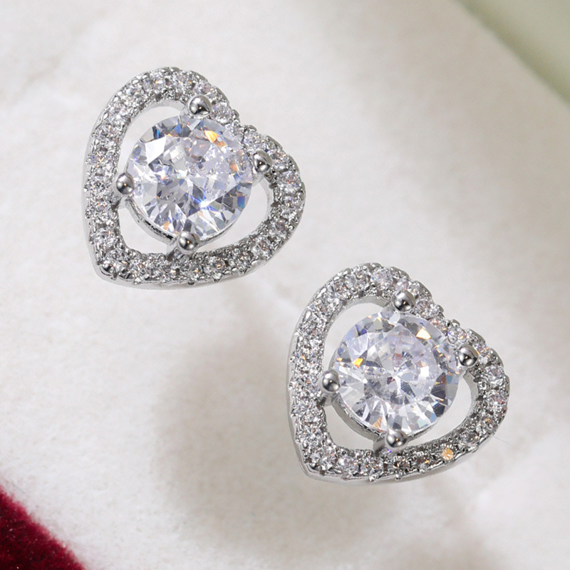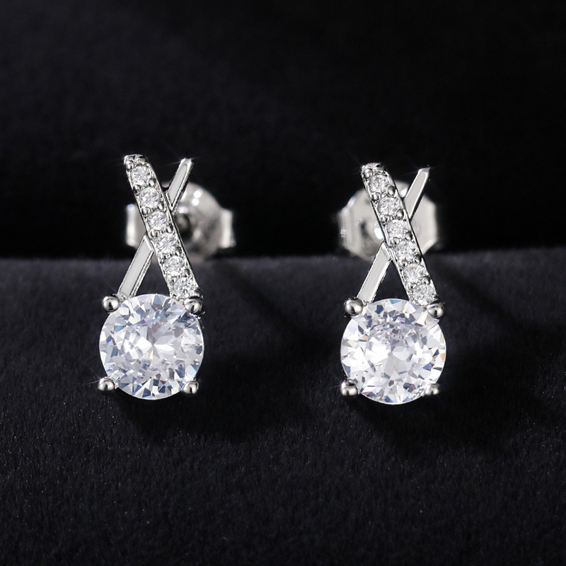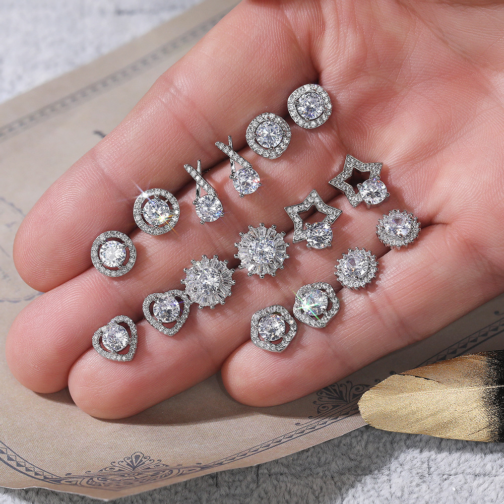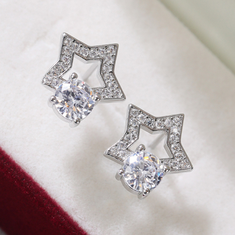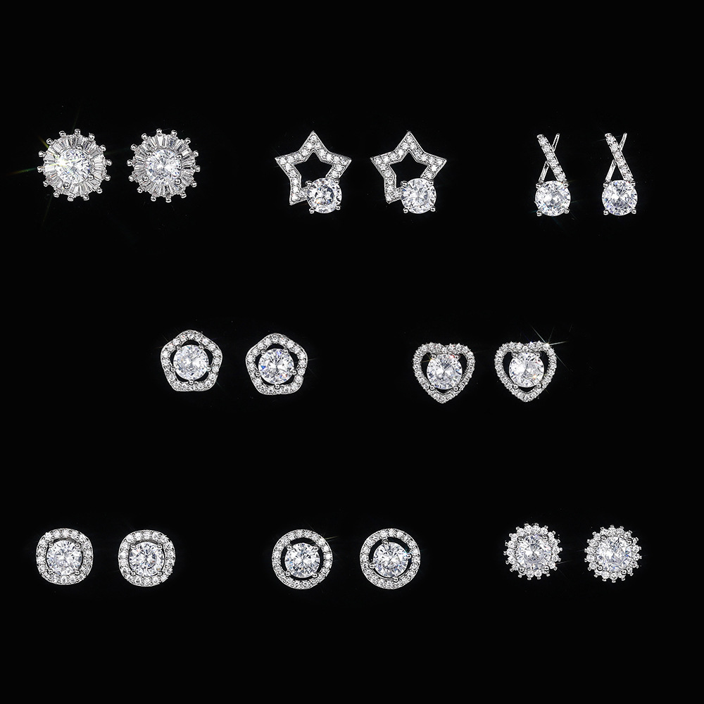 European and American new earrings fashion sweet flower zircon earrings women's simple copper plated white gold earring combination
