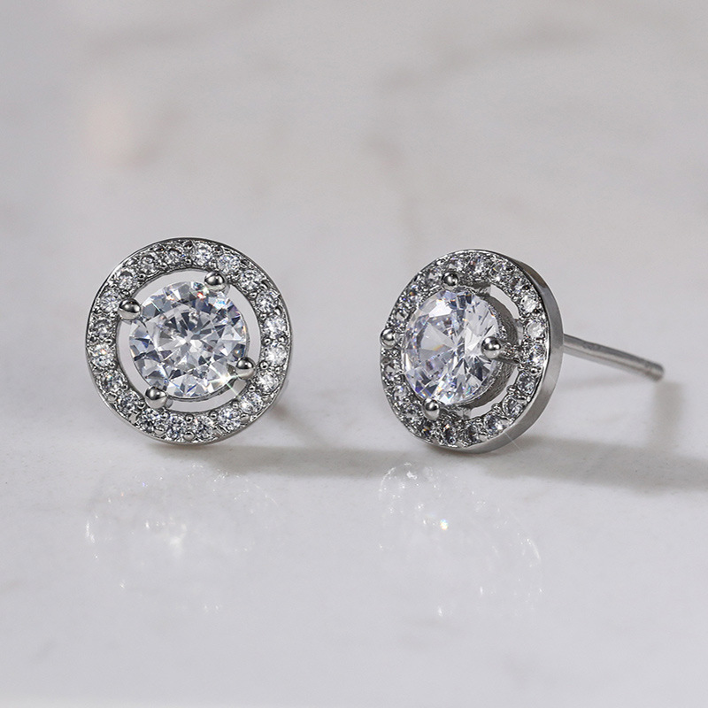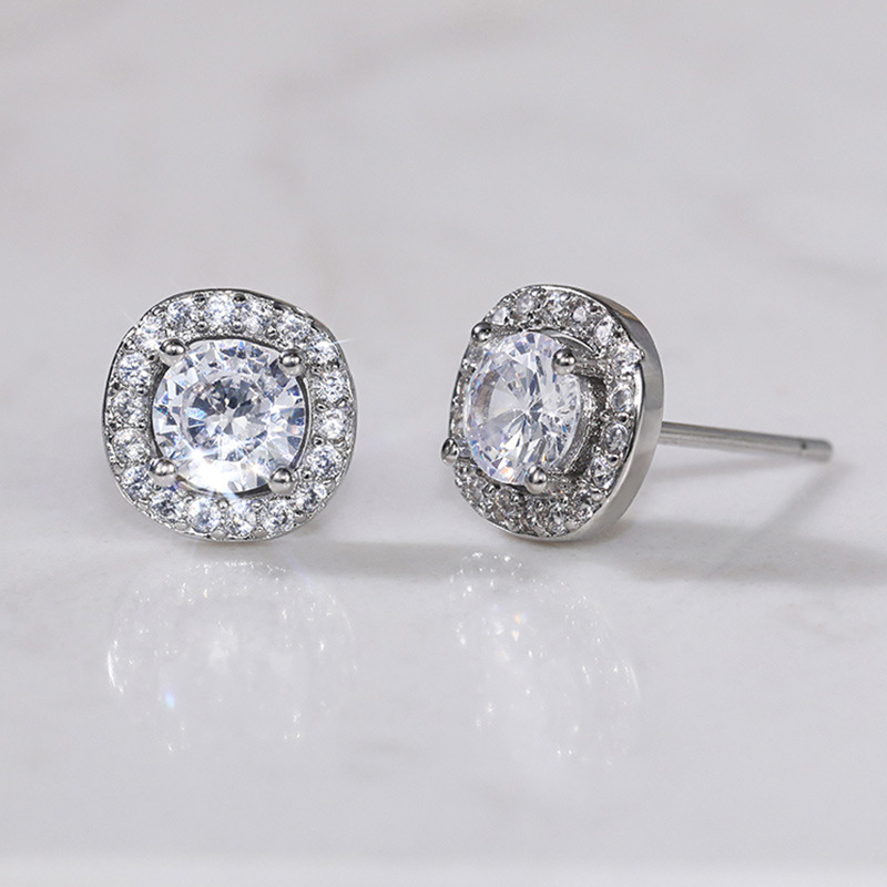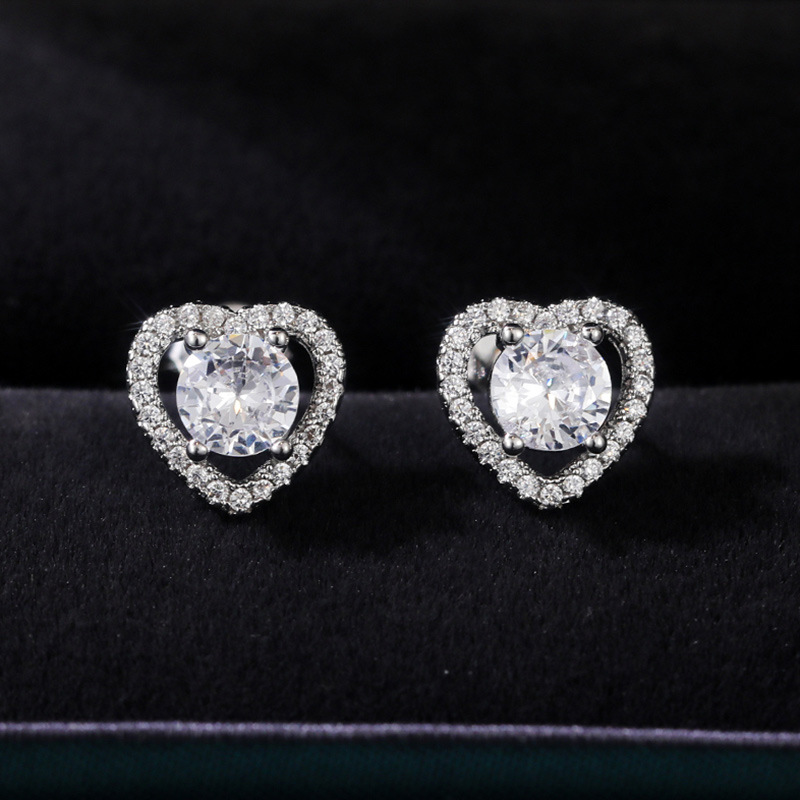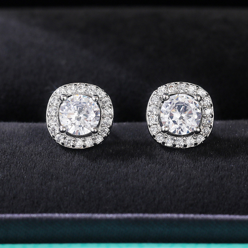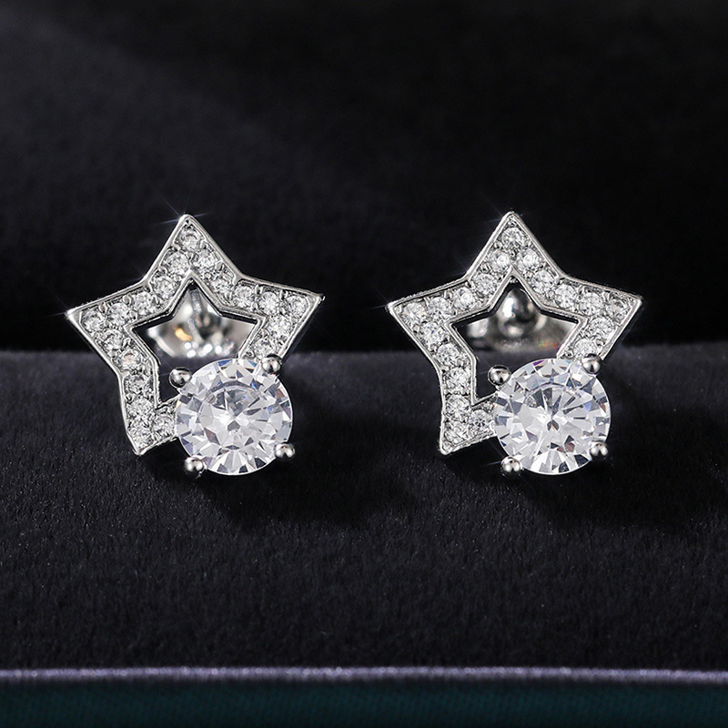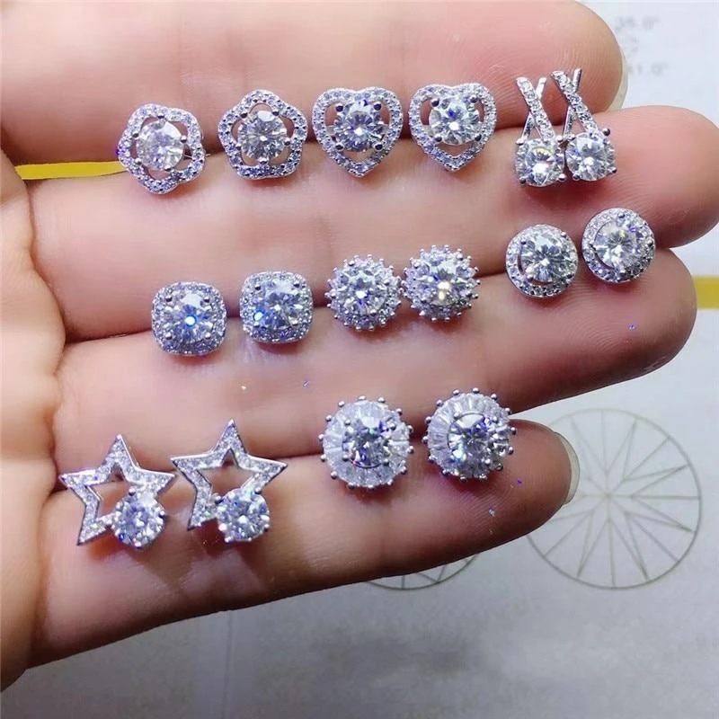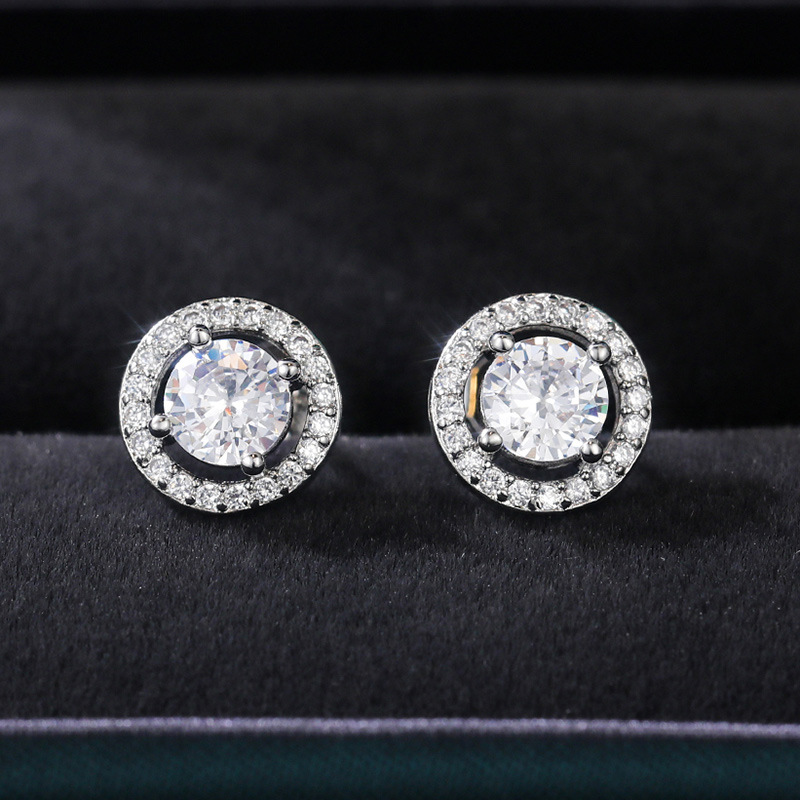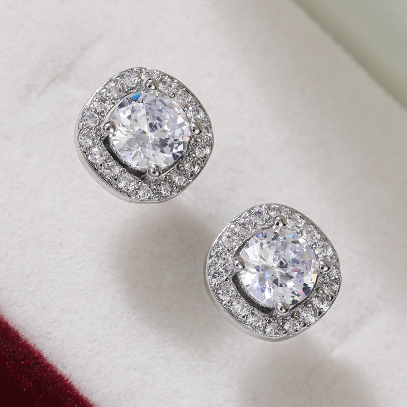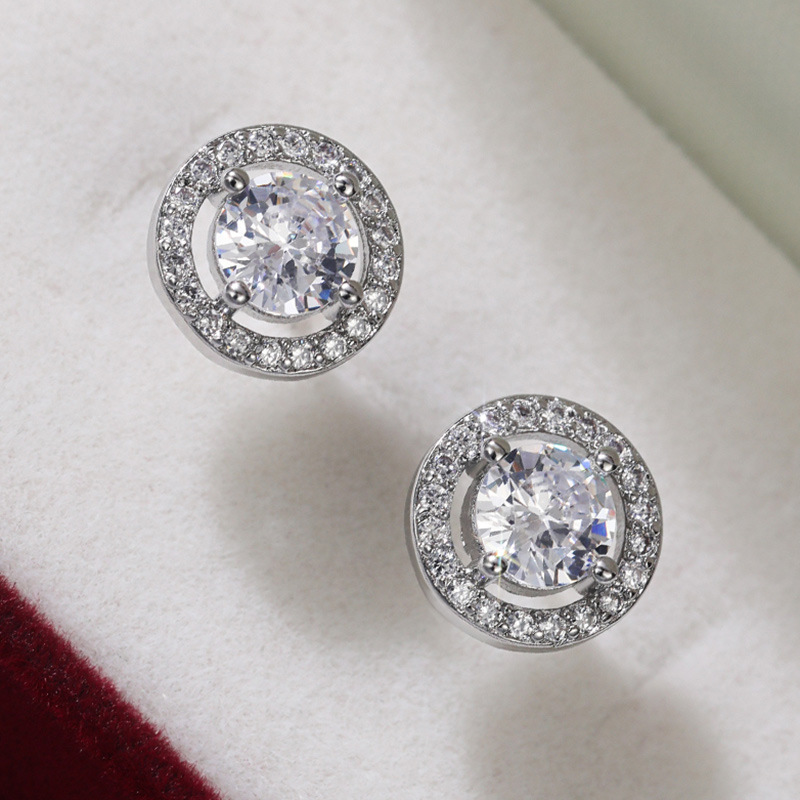 European and American new earrings fashion sweet flower zircon earrings women's simple copper plated white gold earring combination