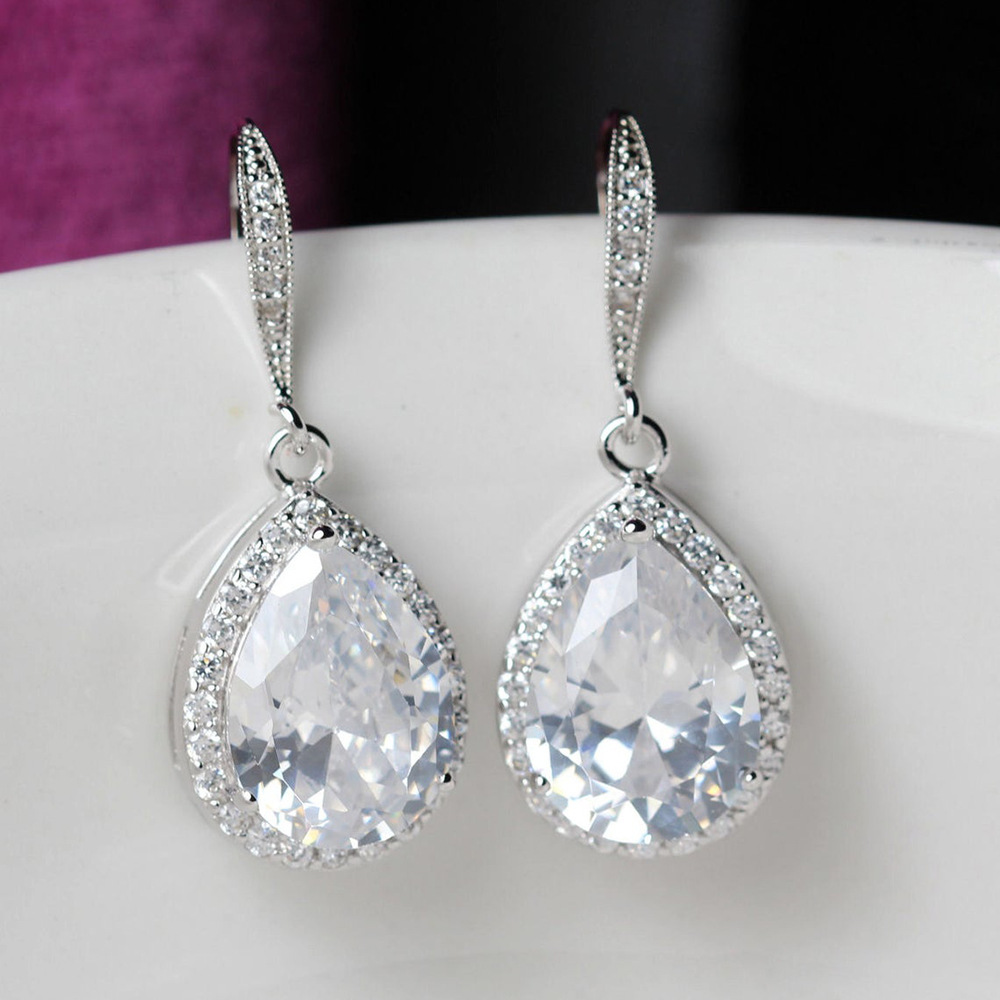European and American new exquisite full diamond water drop zircon earrings female bridal banquet accessories hot earrings