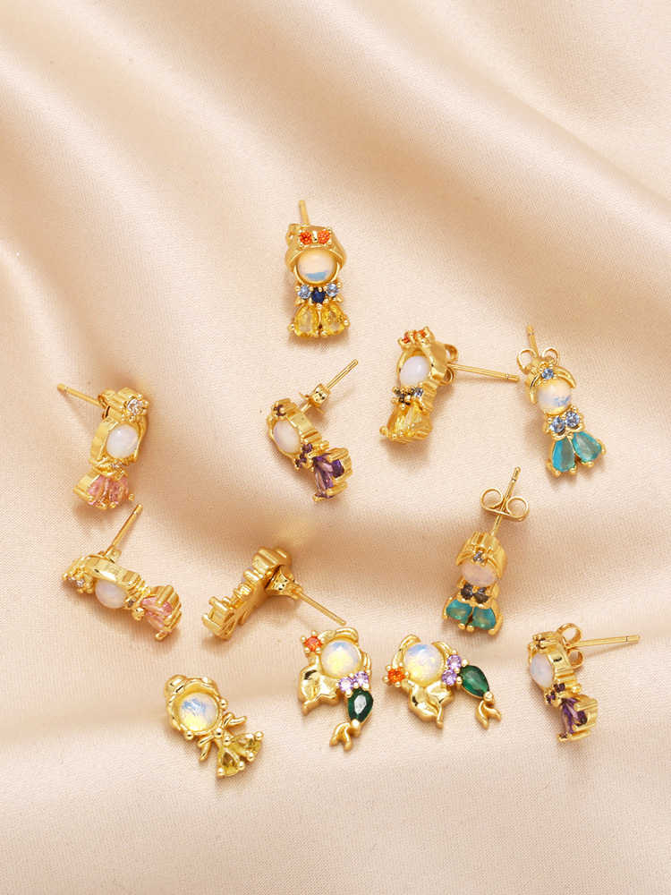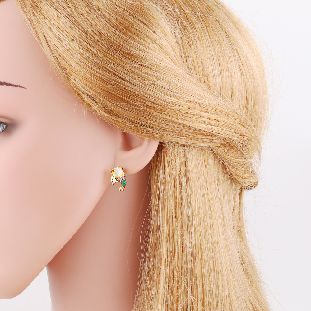 European and American new fairy tale princess earrings female temperament versatile inlaid colorful zirconium mermaid earrings erz13