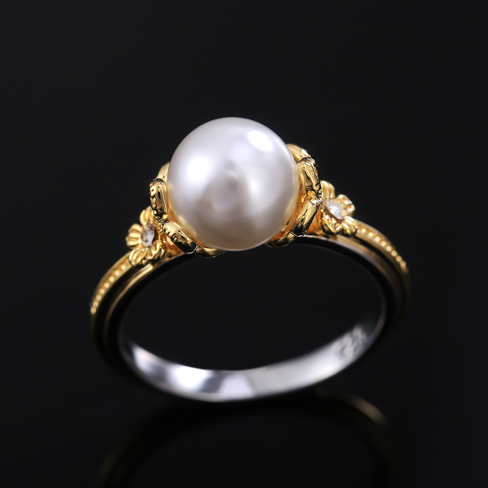 European and American new fashion all-match imitation pearl ring ladies proposal wedding jewelry wholesale