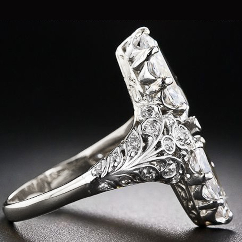 European and American luxury design ring fashionable temperament horse eye zircon ring multi-layer hollow design index finger ring