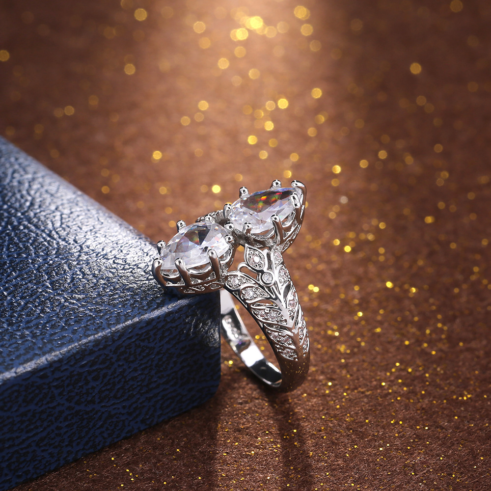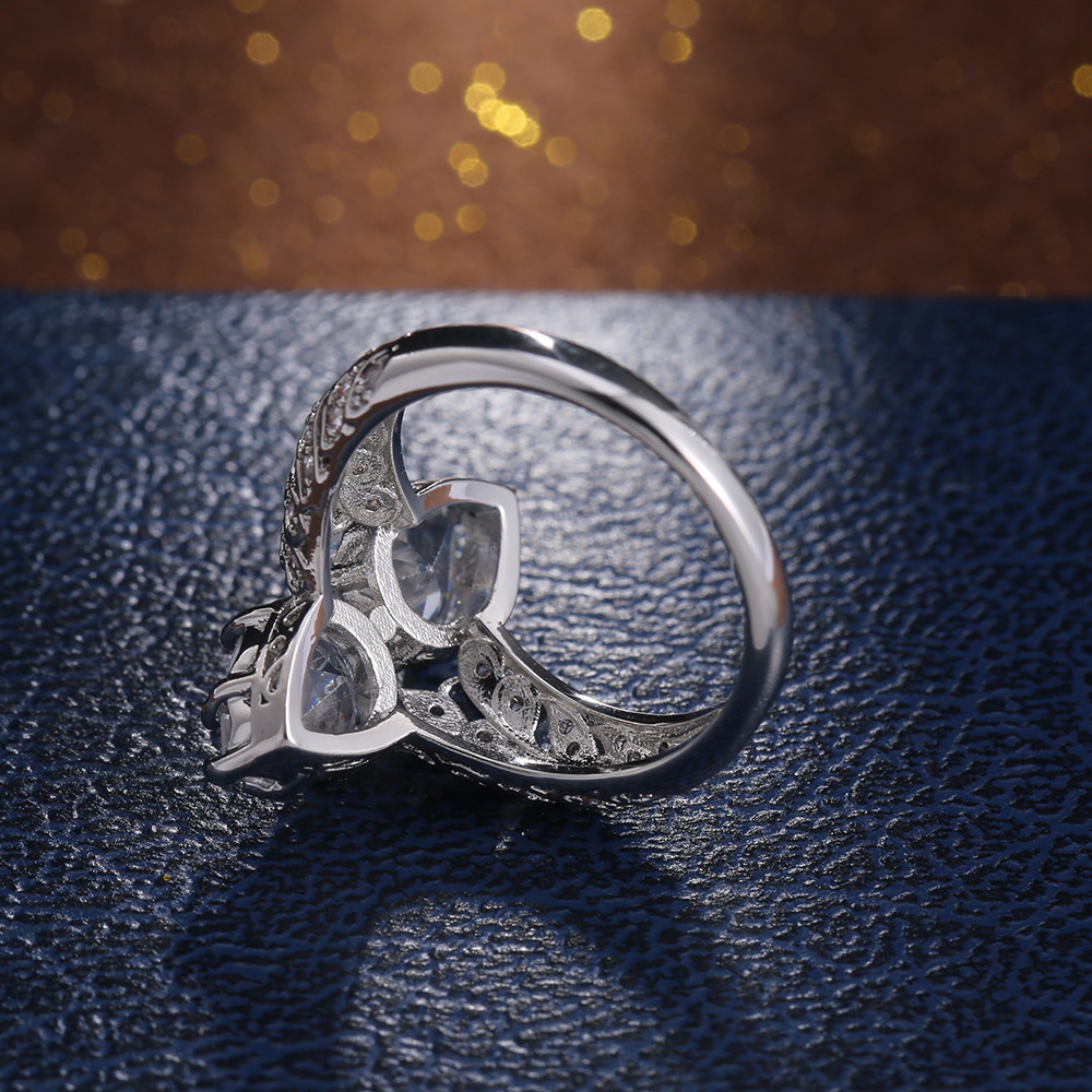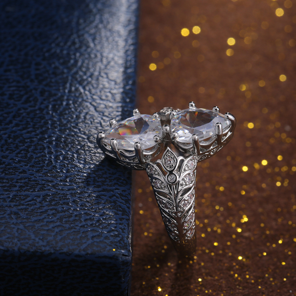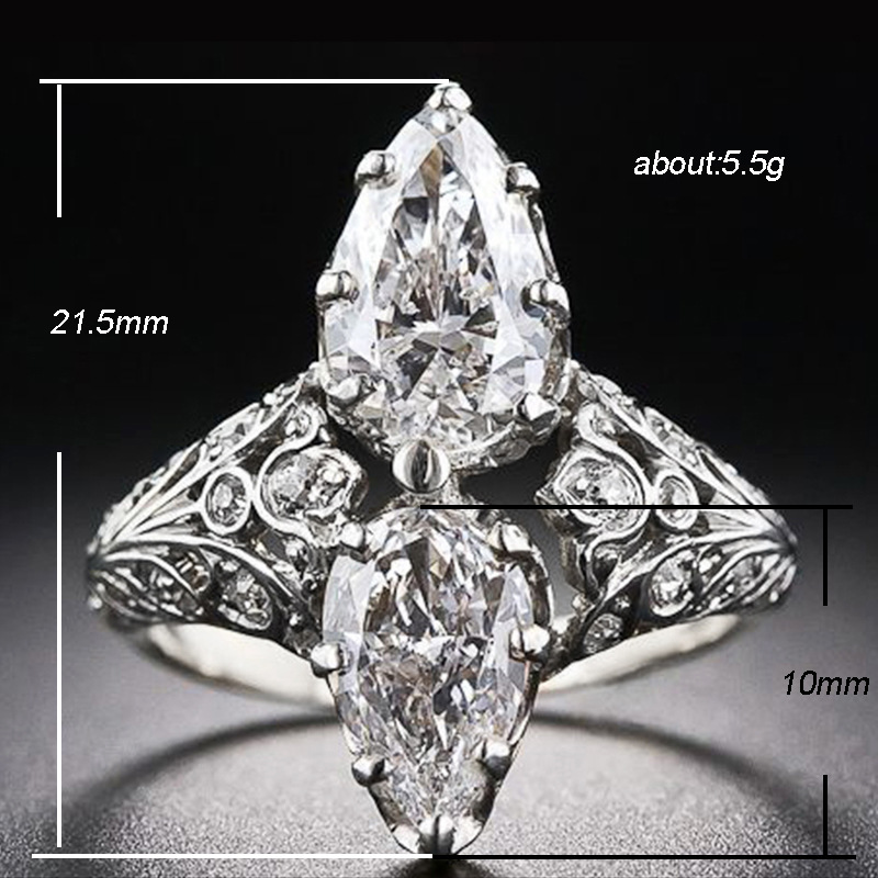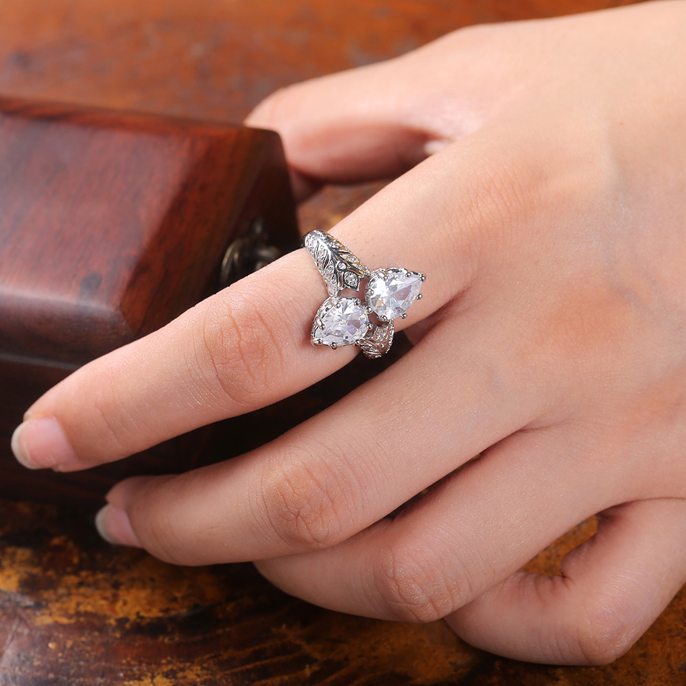 European and American new fashion creative double large pear-shaped zircon ring for women factory direct sales