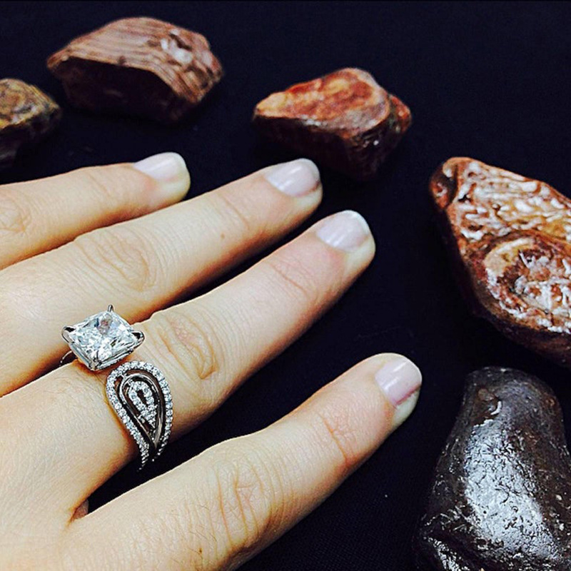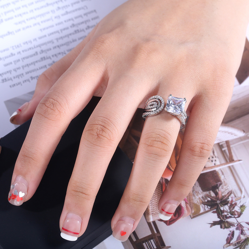 Hot selling new princess square ring European and American hot style inlaid zircon women's jewelry engagement proposal ring