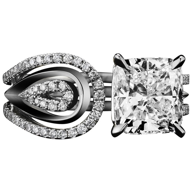 European and American luxury design ring fashionable temperament horse eye zircon ring multi-layer hollow design index finger ring