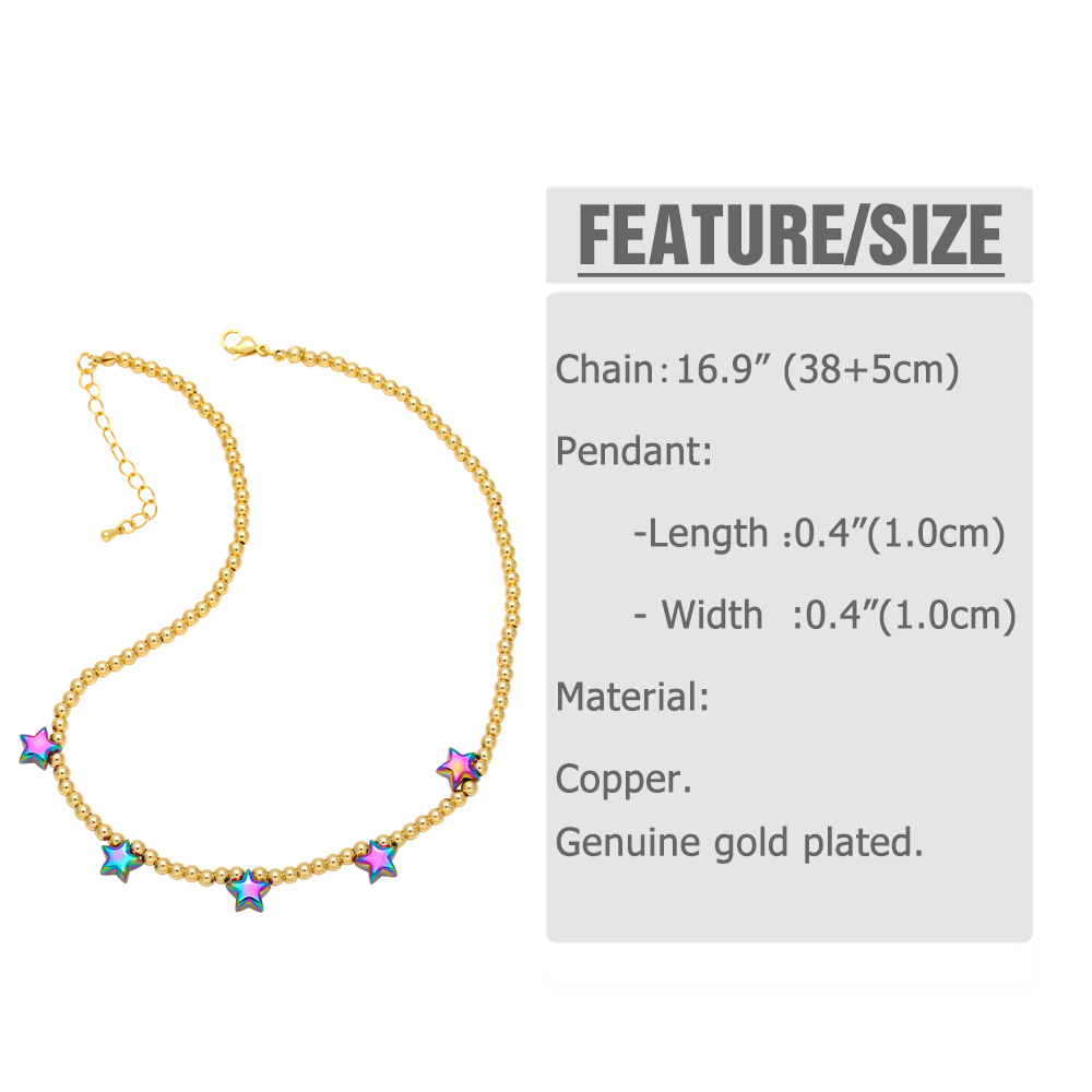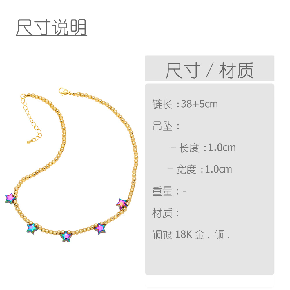 European and American new fashion hip-hop beaded necklace female personality colorful five-pointed star clavicle chain versatile necklace nkb142