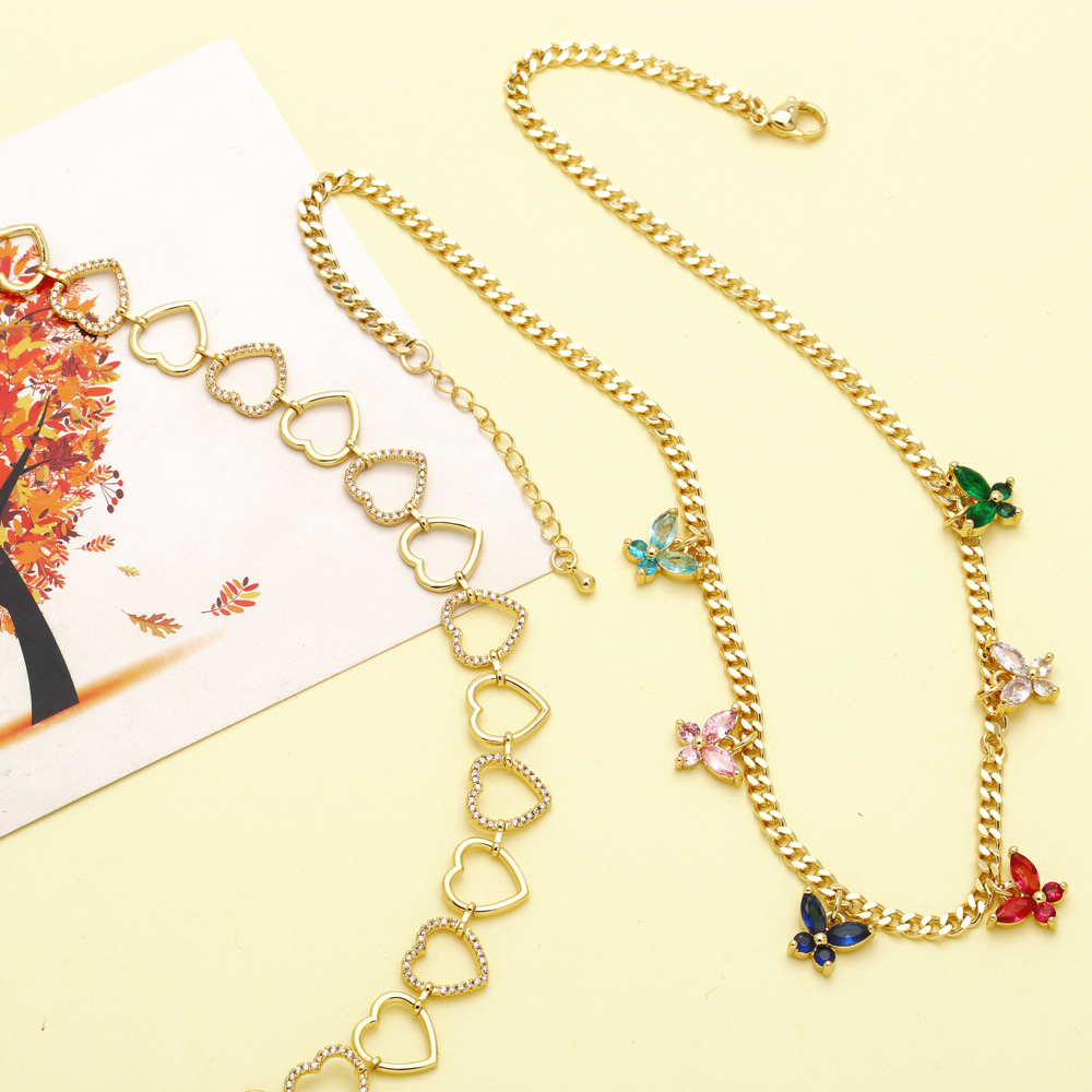 European and American new fashion hollow love clavicle necklace female sweet cool niche butterfly pendant Cuban chain necklace nky09