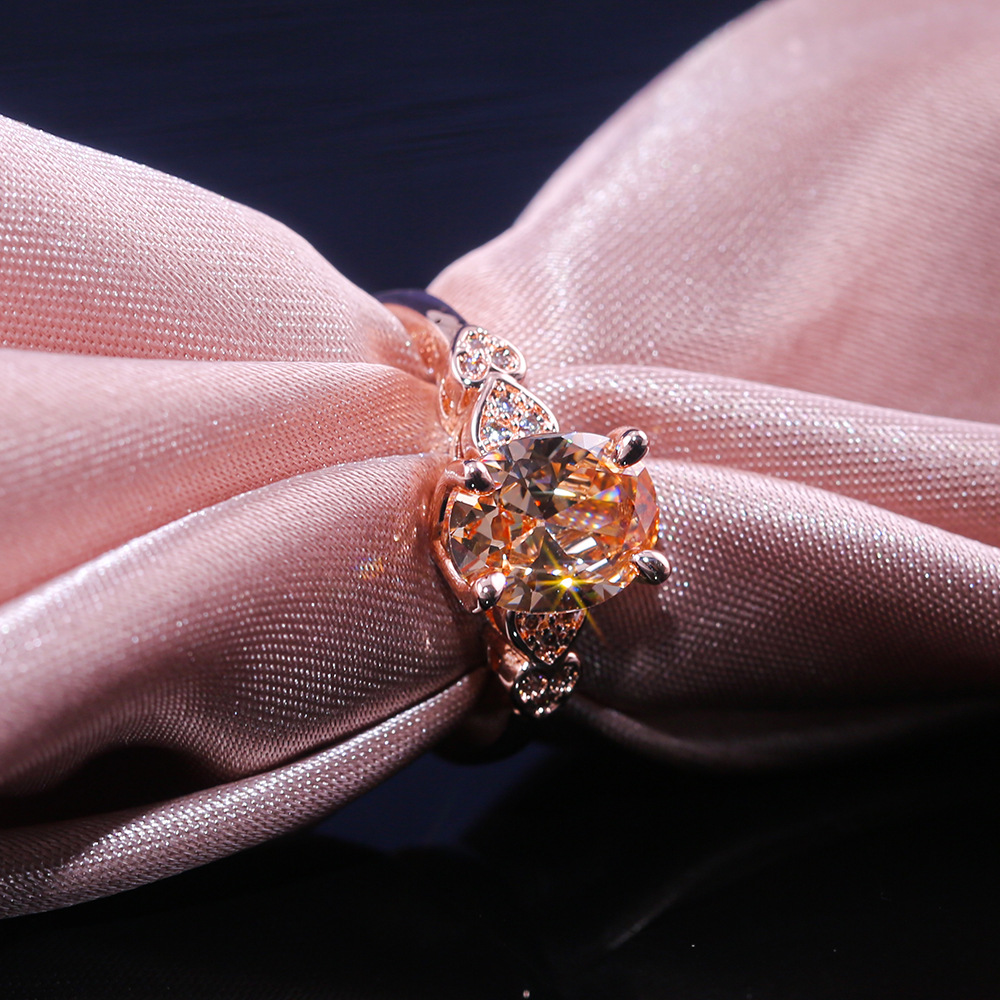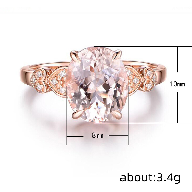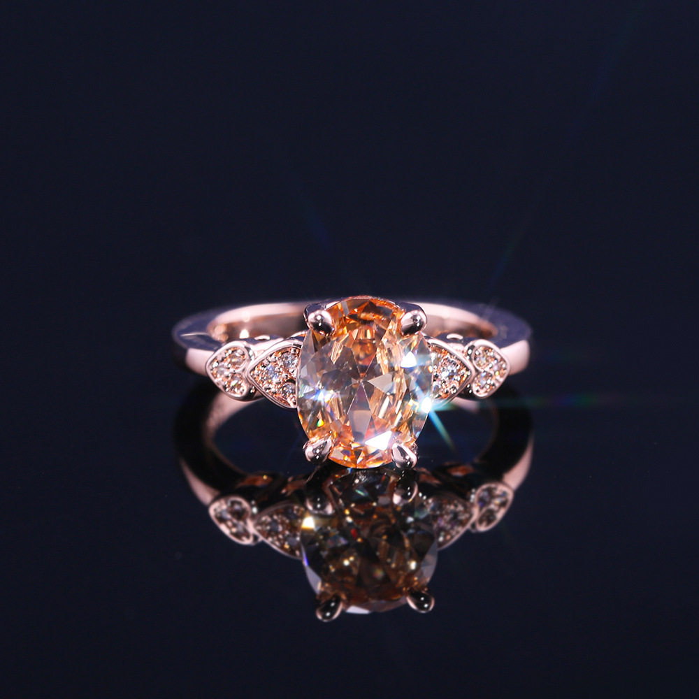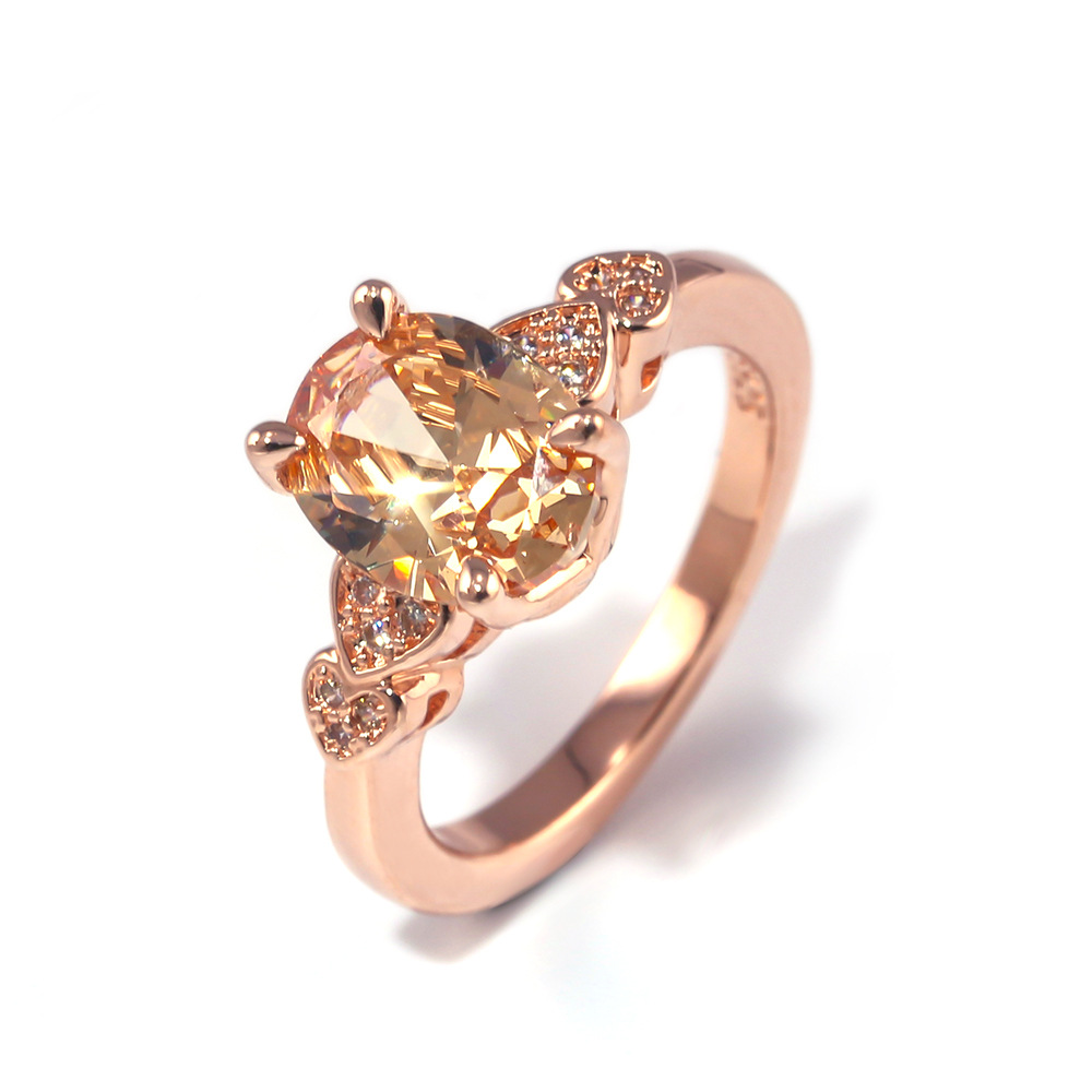 European and American new fashion oval imitation diamond heart ring female copper plated rose gold zircon jewelry