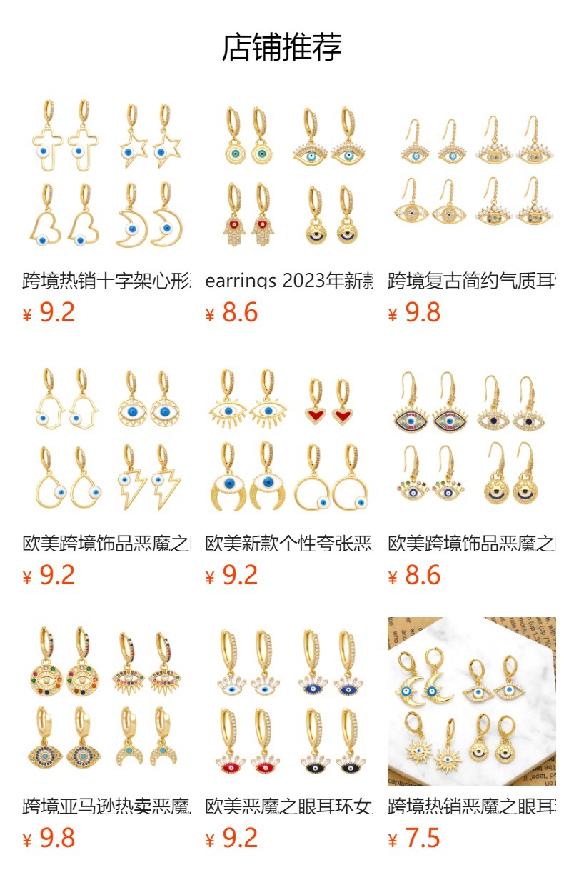 European and American new fashion personality Turkish blue eye earrings trendy heart-shaped devil eye earrings female ert48