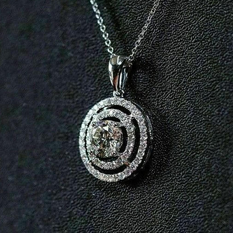 European and American new fashion round pendant necklace for women Korean style simple zircon sweater chain clavicle chain