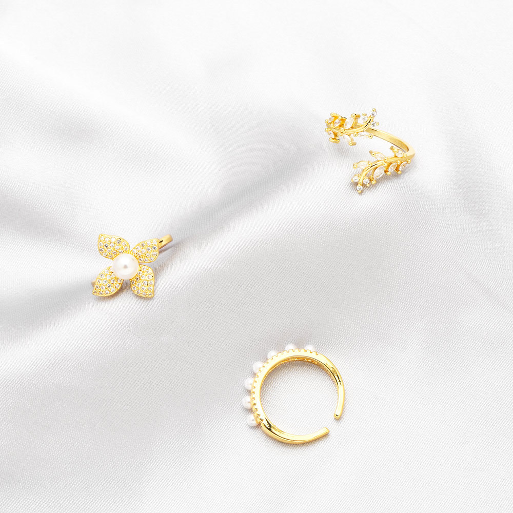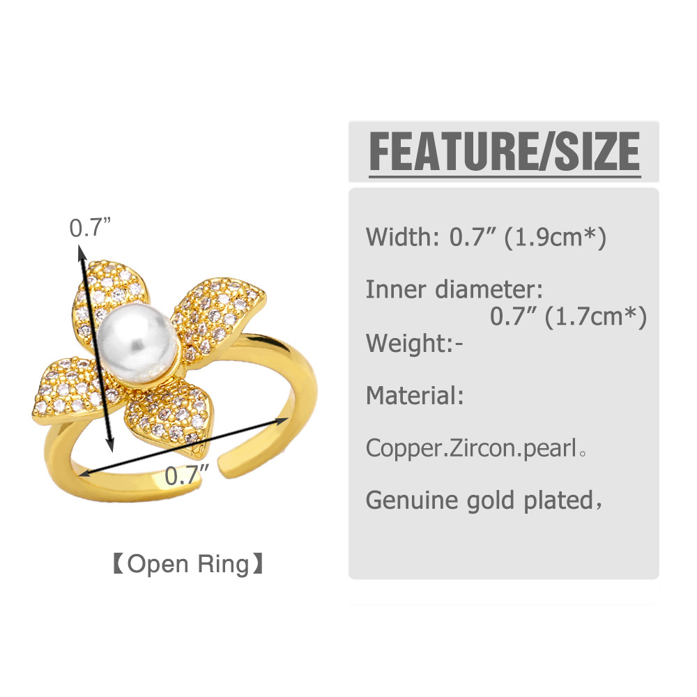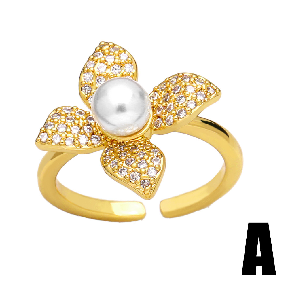 European and American new fashion simple leaf flower ring female cold style zircon pearl ring rir61